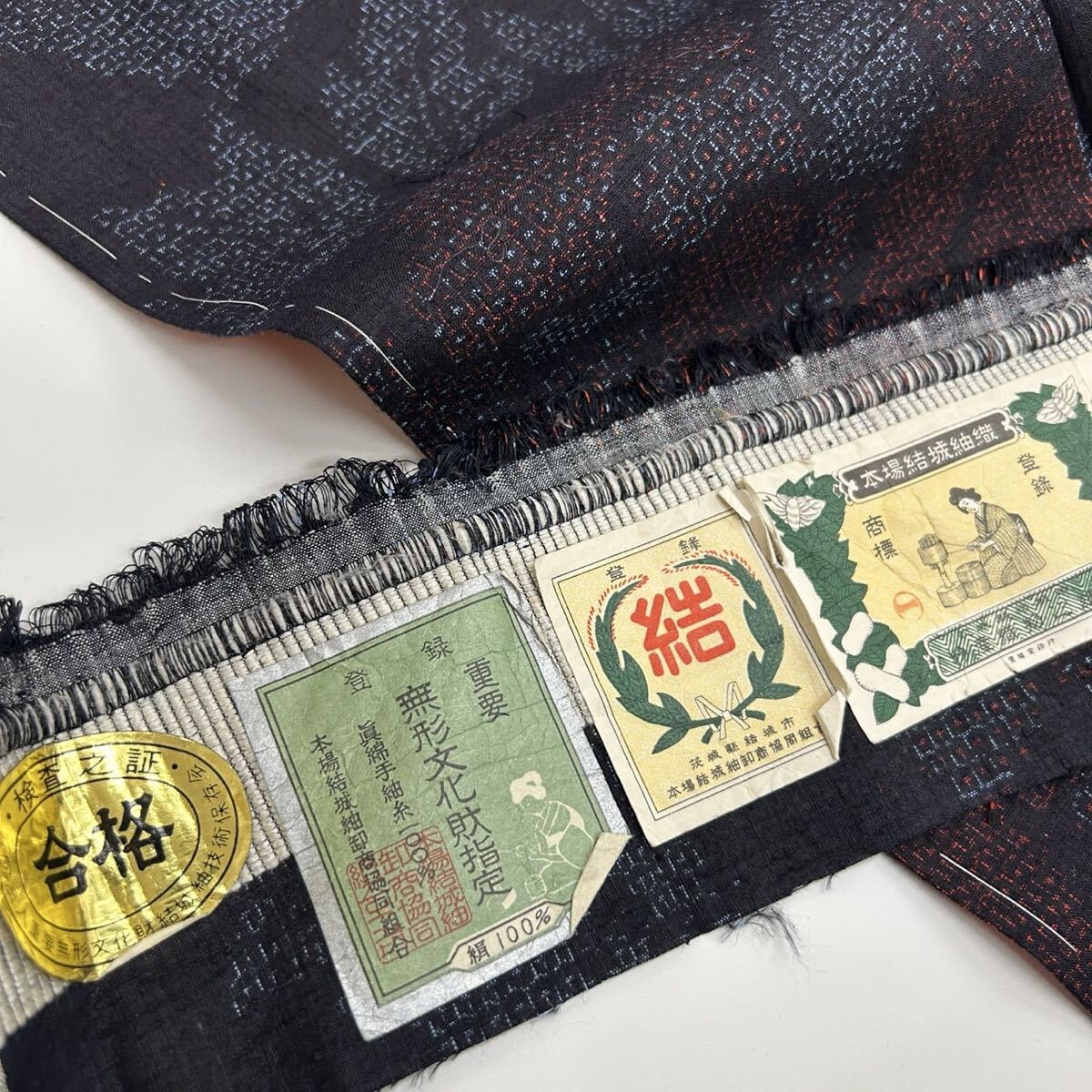 本場結城紬 無形重要文化財 証紙付き 結マーク 正絹 F-287 收藏