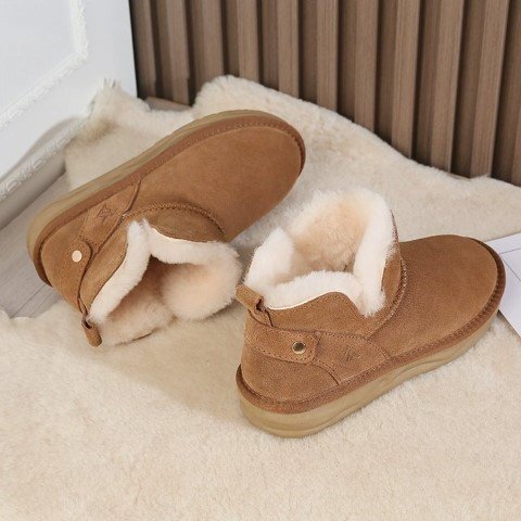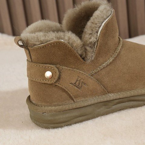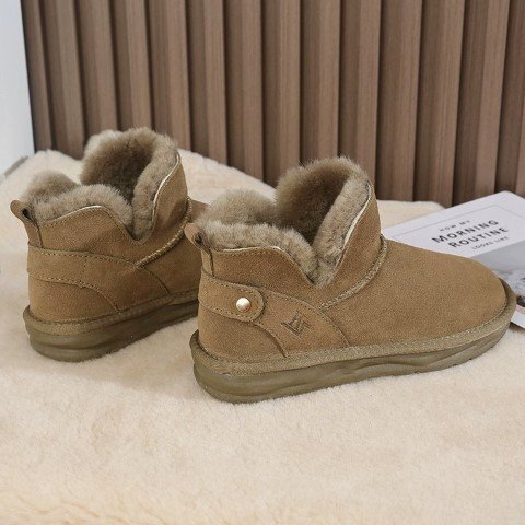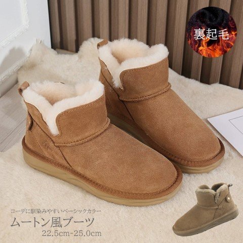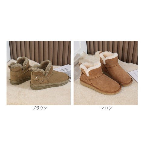 レディース 靴 ショートブーツ ムートン風ブーツ ぺたんこ フラット 黒 裏起毛 裏ボア 黒 23.5cm(37) マロン 收藏