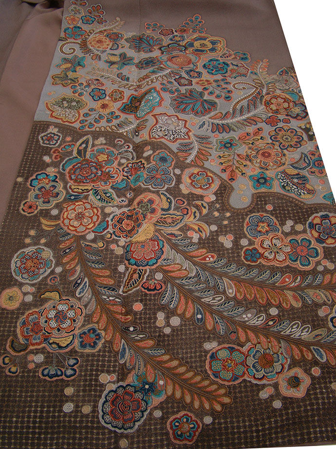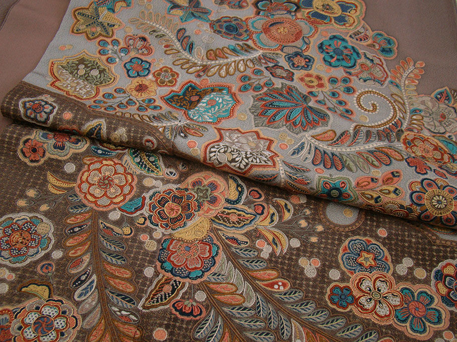 ※薫り高い装いを謳い、艶麗優美な着物スタイリングを完成させる匠の手技を駆使した「汕頭刺繍」入りの訪問着です。 帯や小物次第で様々な表情をお愉しみ頂けることでしょう。 パーティー、慶事の宴、冠婚祭、結婚披露宴、お茶会、社交着等々。 40代~70代迄幅広く着用出来ます。 身長162cm~168cmの貴女に最適です。 |