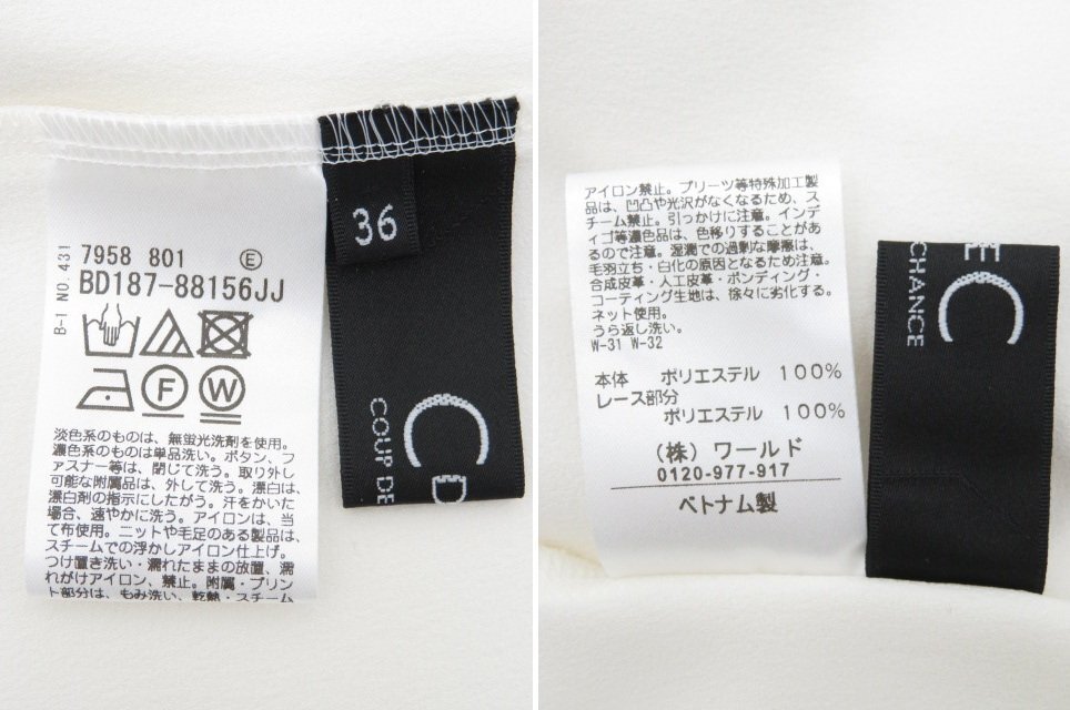 未使用 COUP DE CHANCE ブラウス トップス ホワイト 36 #胸レース AP-109779 收藏