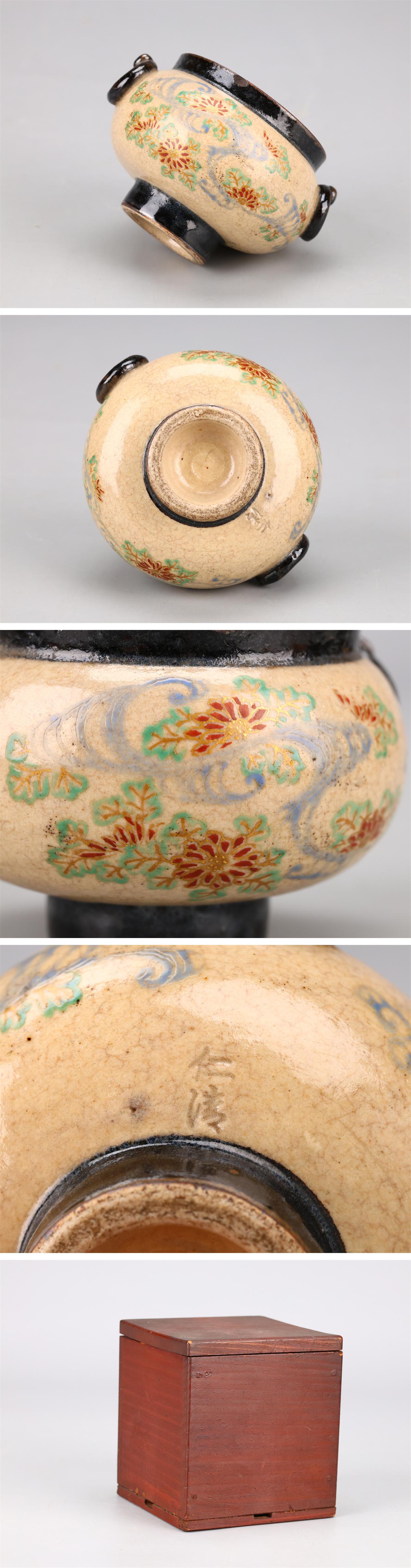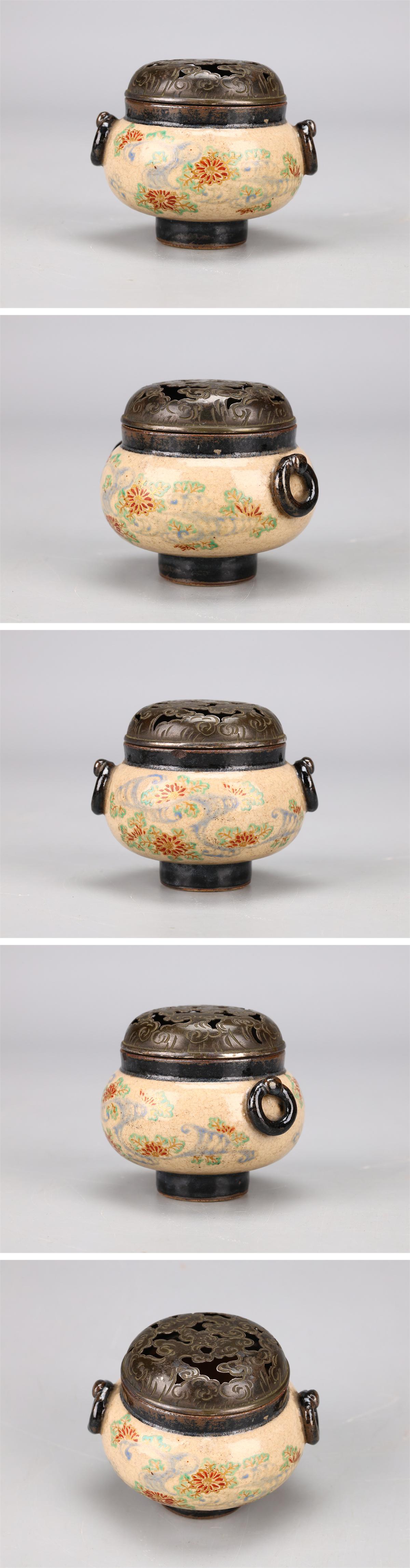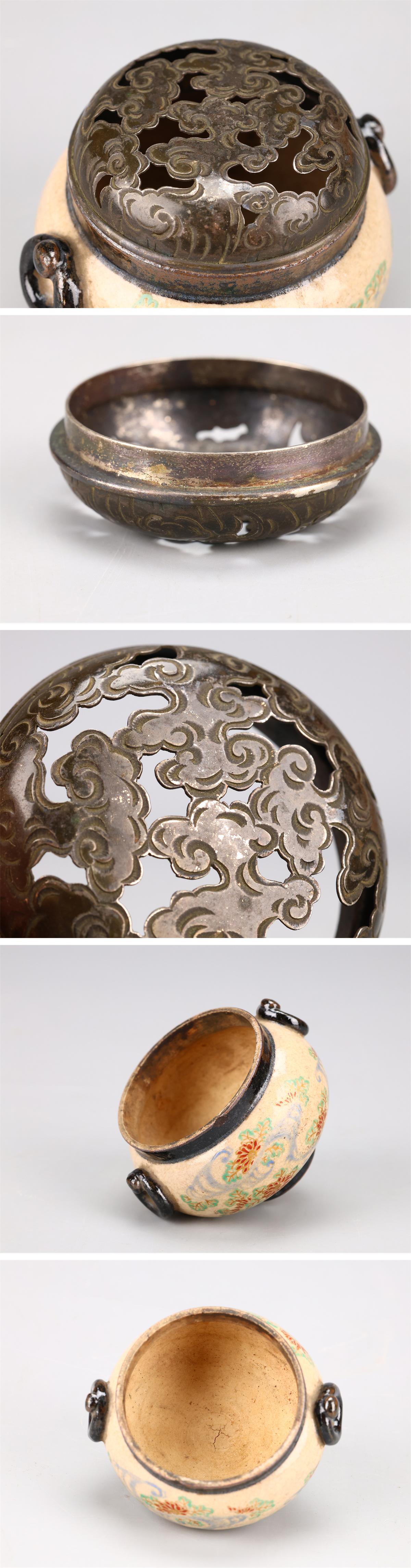 【吉】CM839 江戸時代 【野々村仁清】作 京焼 純銀火屋 小香炉/箱付 時代の小ホツあり 美品Ng! 收藏
