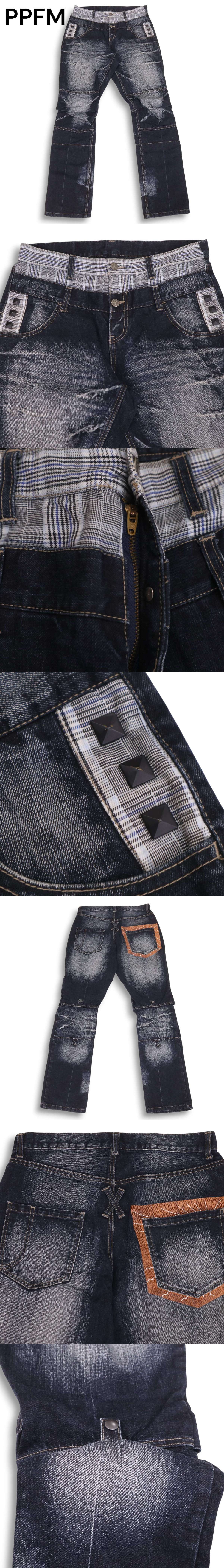 Y2K 00s★ PPFM ペイトンプレイス 立体裁断★USED加工 チェック切替 ダブルウエスト風 デニム パンツ ジーンズ Sz.M メンズ 收藏