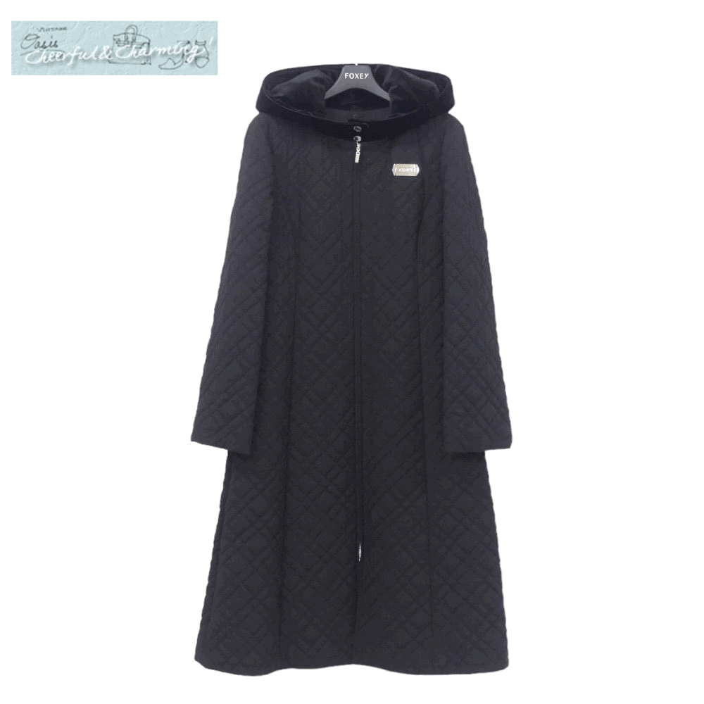 FOXEY NEWYORK コート クレオ 42 ブラック ウォームダール 中綿 Aライン ベロアフード 23年商品 43869 收藏