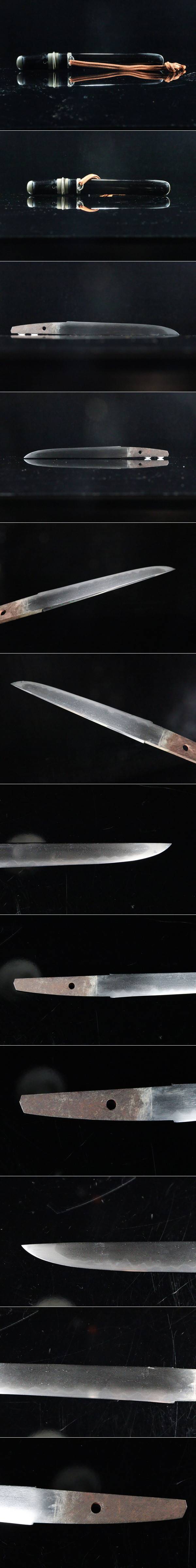 【ASAHI】貴重刀剣鑑定書紛失 短刀 無銘 あいくち 17.2cm 平造り ほぼ無傷の肌物に綺麗な刀 時代古刀 黒塗鞘拵[710238rp] 收藏