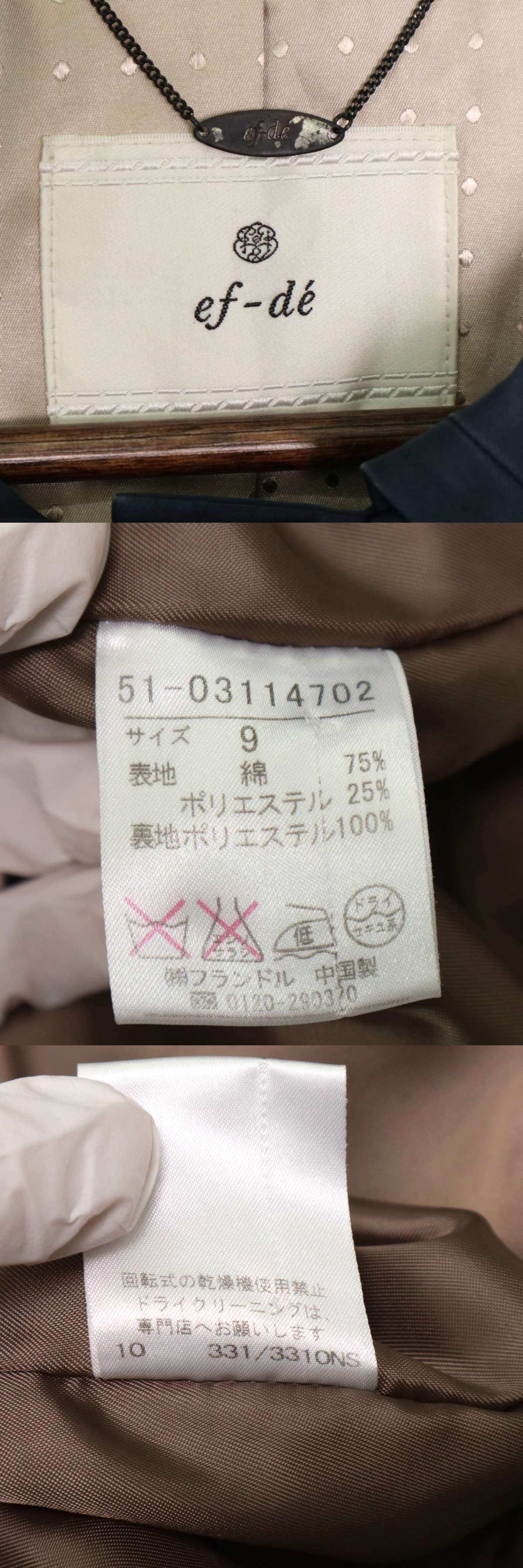 ef-de エフデ 秋冬 プリーツ★ シングル コート Sz.9 レディース ネイビー 收藏