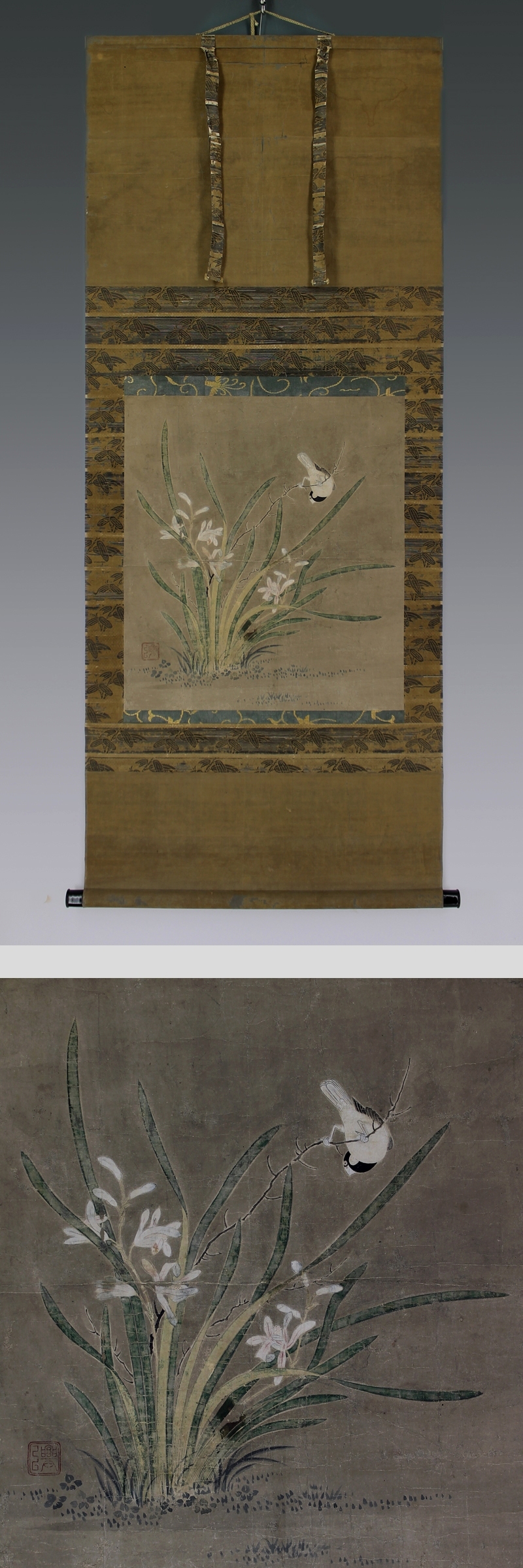 | №130725【真作】狩野興以【花鳥図】◆紙本◆合箱◆掛軸 | |