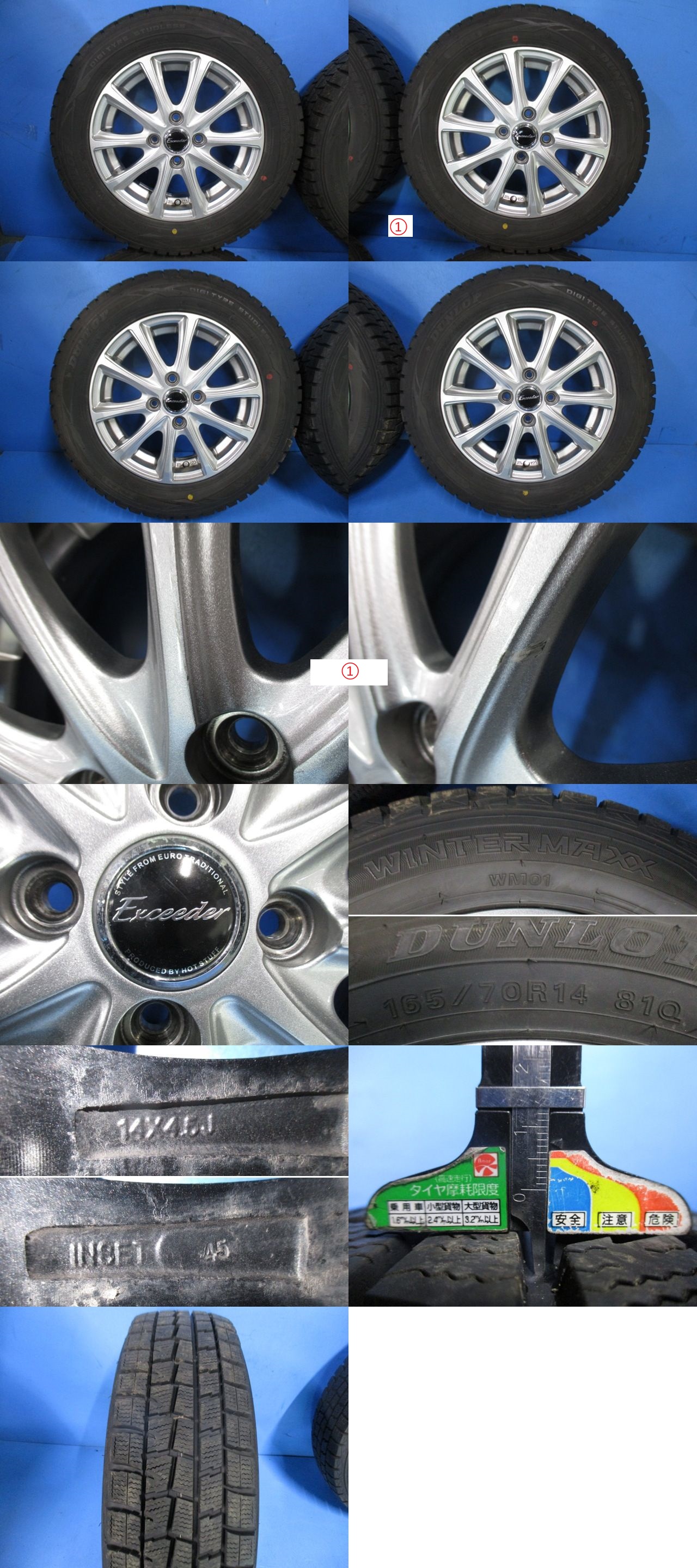 【即決有】 EXCEEDER E04 14インチ 4.5J +45 PCD100 4穴 165/70R14 81Q スタッドレス タイヤホイール 4本 (g002265) 收藏