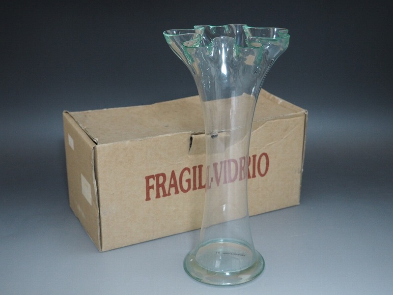 B1505 FRAGIL VIDRIO LA MEDITERRANEA HAND MADE IN SPAIN OF RECYCLED GLASS ガラス 花瓶 化粧箱付 ☆ ハンドメイド 花器 フラワーベース 收藏
