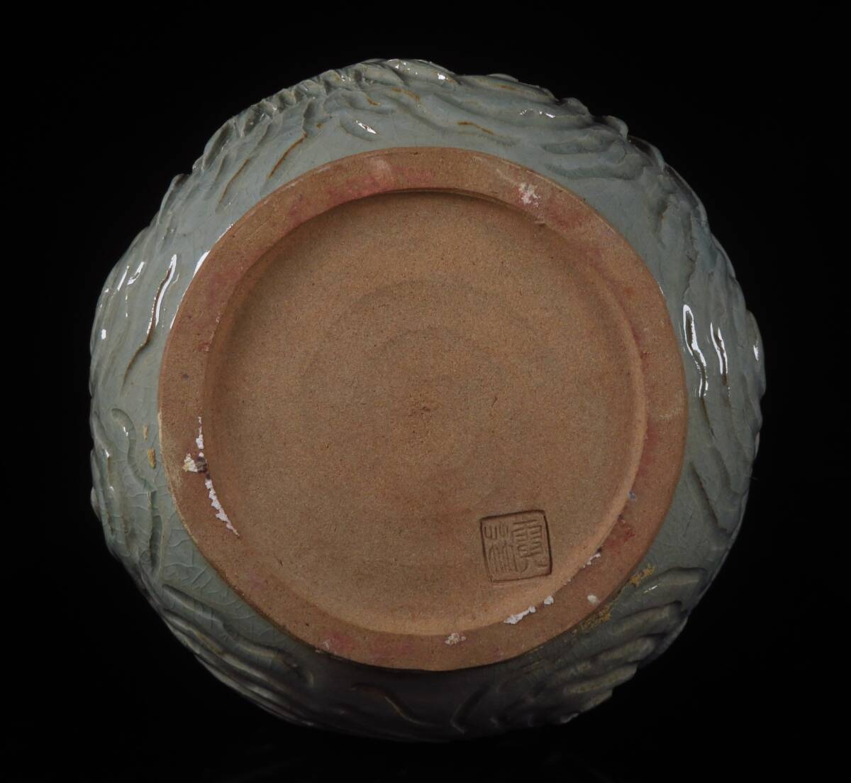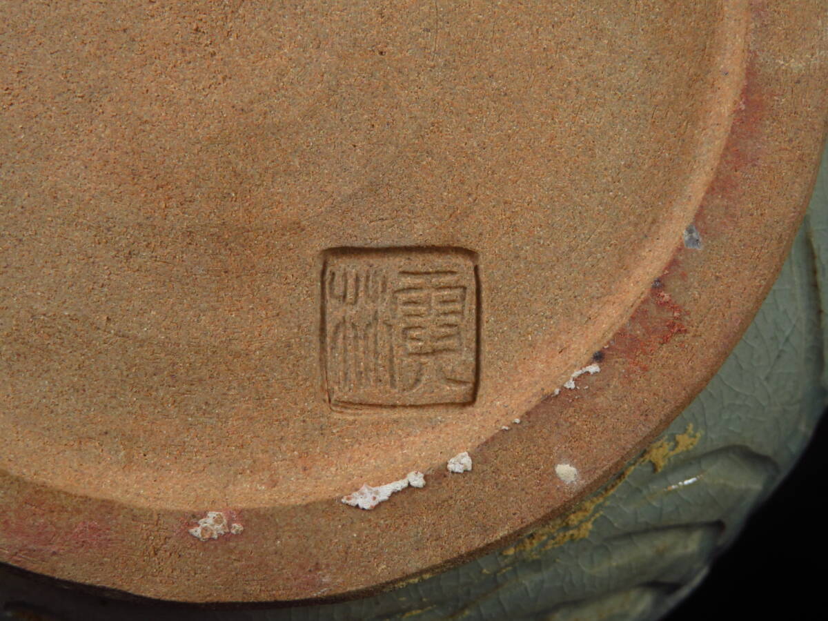 | 【SAKURAYA】迫力ある希少な作品【青磁龍図花入/唐津焼の名工 中野霓林】細密彫刻 陽刻 花瓶 飾壺 壷 作家 在銘 骨董品 古美術品 高さ39cm | ||