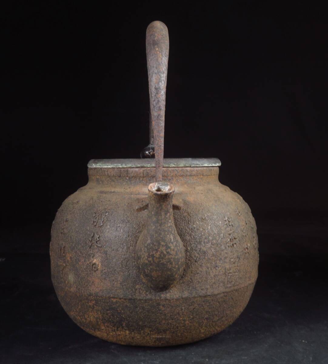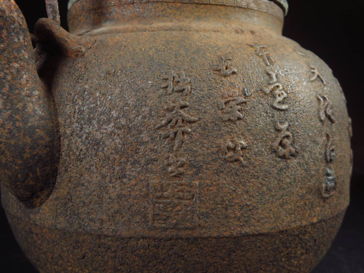 【SAKURAYA】旧家整理品【龍文堂名人上田照房造 王鎮之印/漢詩彫鉄瓶】急須 湯沸 茶道具 煎茶道具 希少品 作家 骨董品 古美術品 高さ23.5cm 收藏