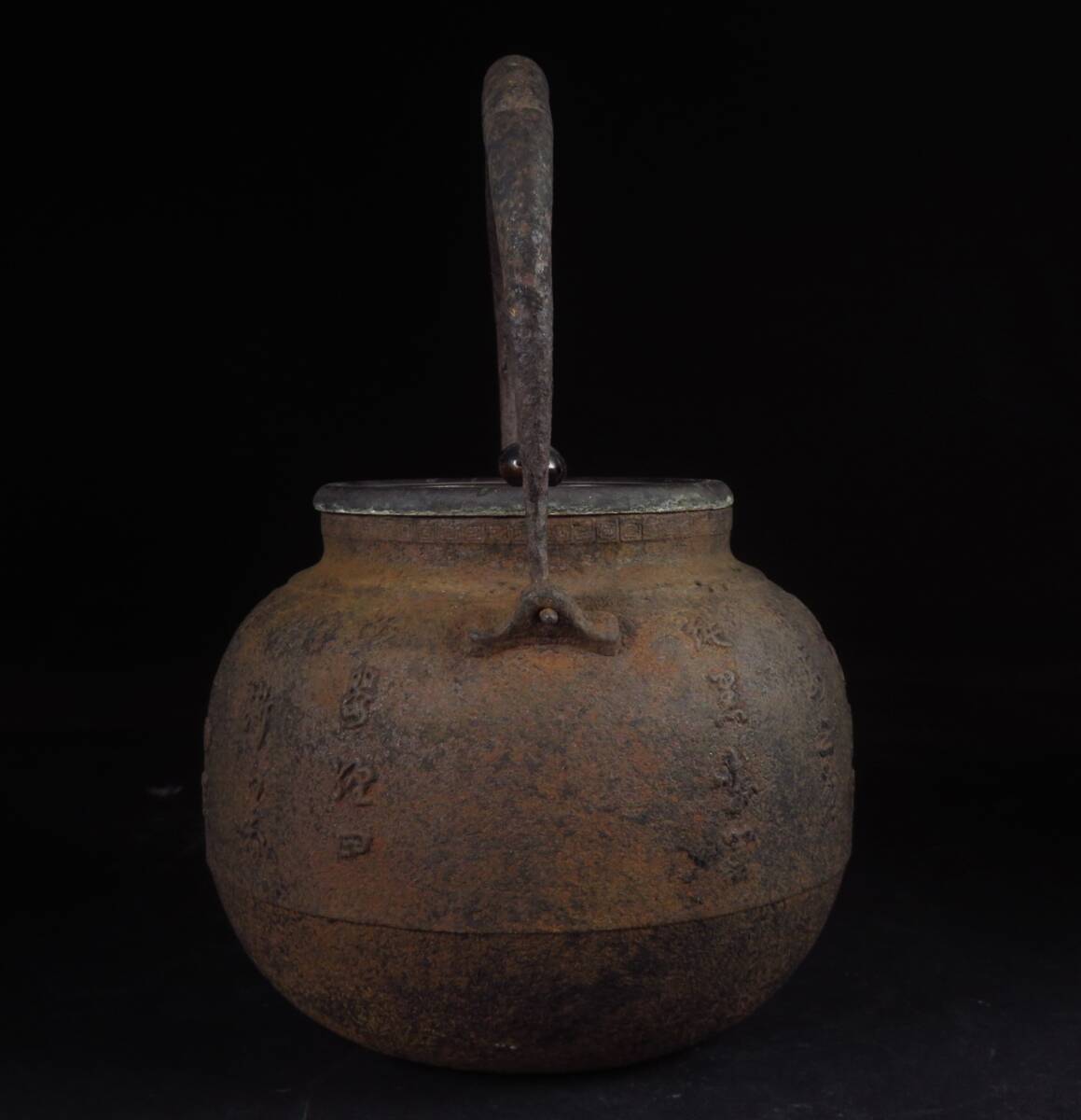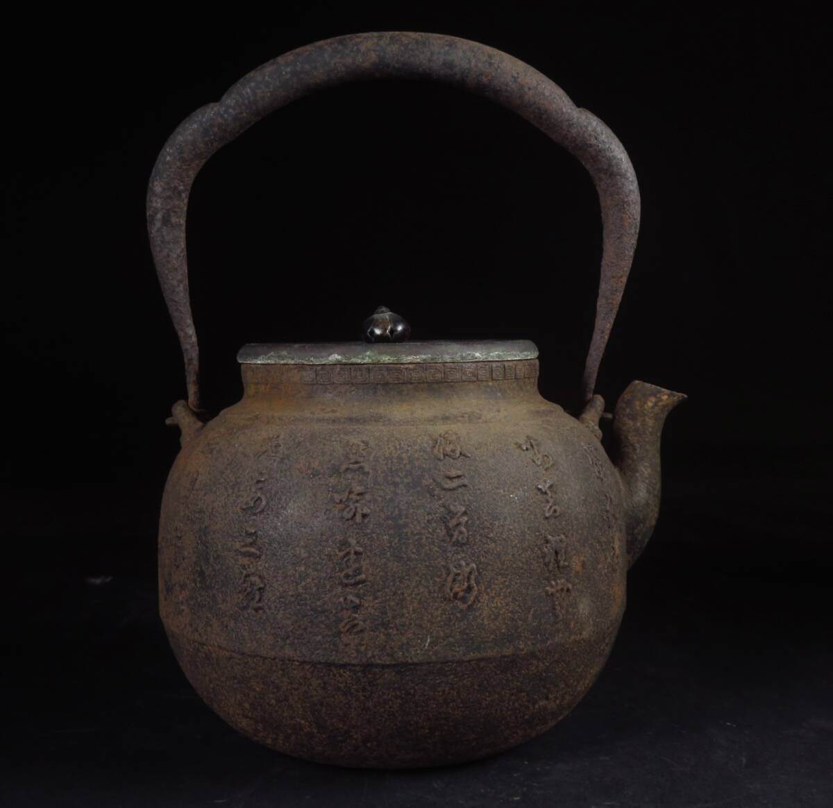 | 【SAKURAYA】旧家整理品【龍文堂名人上田照房造 王之印/漢詩彫鉄瓶】急須 湯沸 茶道具 煎茶道具 希少品 作家 骨董品 古美術品 高さ23.5cm | ||