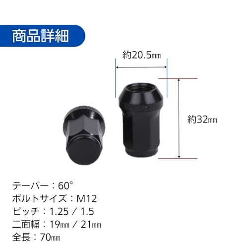 ロック ナット ブラック 車用 タイヤホイールナット M12 ショートナット ラグナット レーシングナット P1.5×16個 收藏