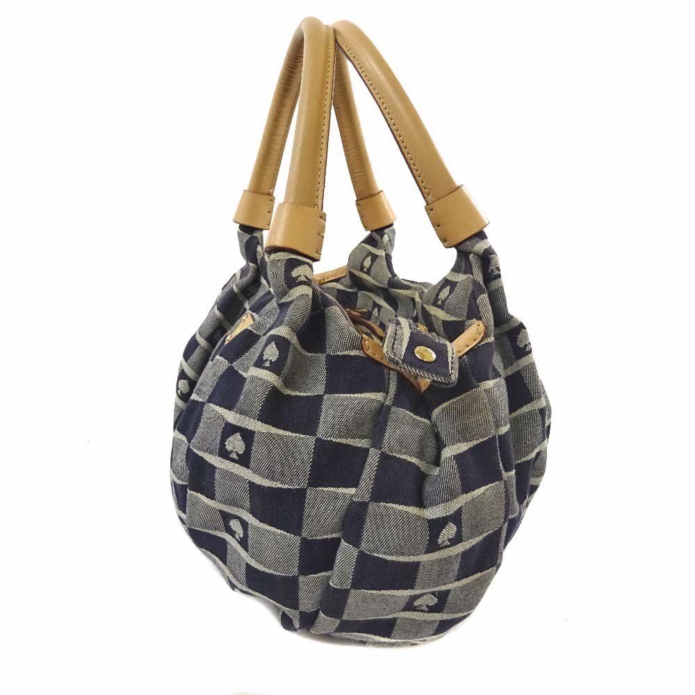 ケイトスペード ニューヨーク スペード柄 ハンドバッグ レディース キャンバス レザー ネイビー ベージュ 中古 Kate Spade 收藏