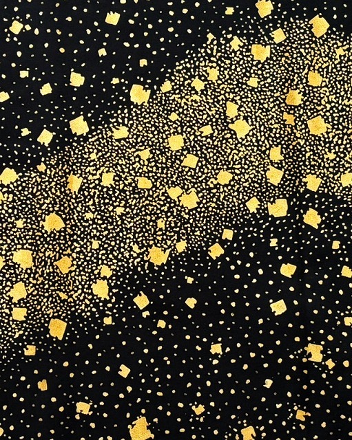 | E0408-58 こちらは、踊り衣装 ポリエステル小紋の生地のはぎれ(残布)です。 手芸用として 和装用小物製作用として いろいろご利用されてはいかがでしょうか。 生地の細かな名称の不明などはご了承のうえでお求め下さるようお願いいたします。 お色は黒色地に金色箔にて流水柄やモザイク柄の踊り衣装の残布です。◎ | ||||