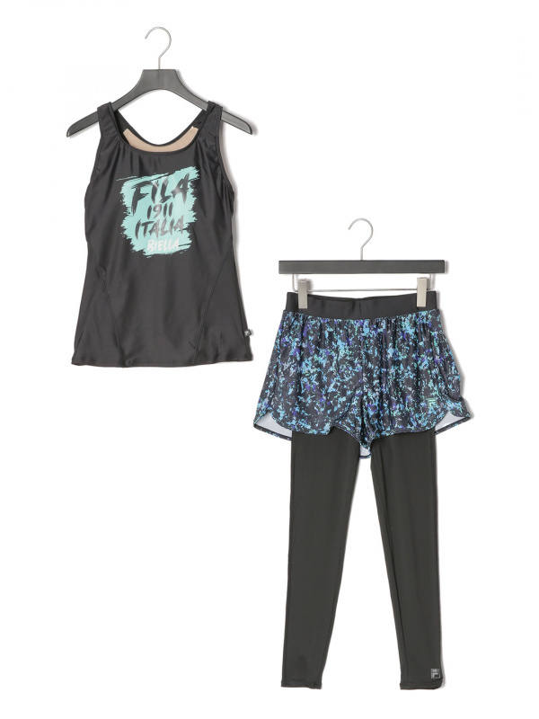 【9号 M】 新品 レディース タンキニ 3点セット 水着 水陸両用 ブラトップ レギンス ショートパンツ ヨガウェア FILA フィラ 黒 送料無料 收藏