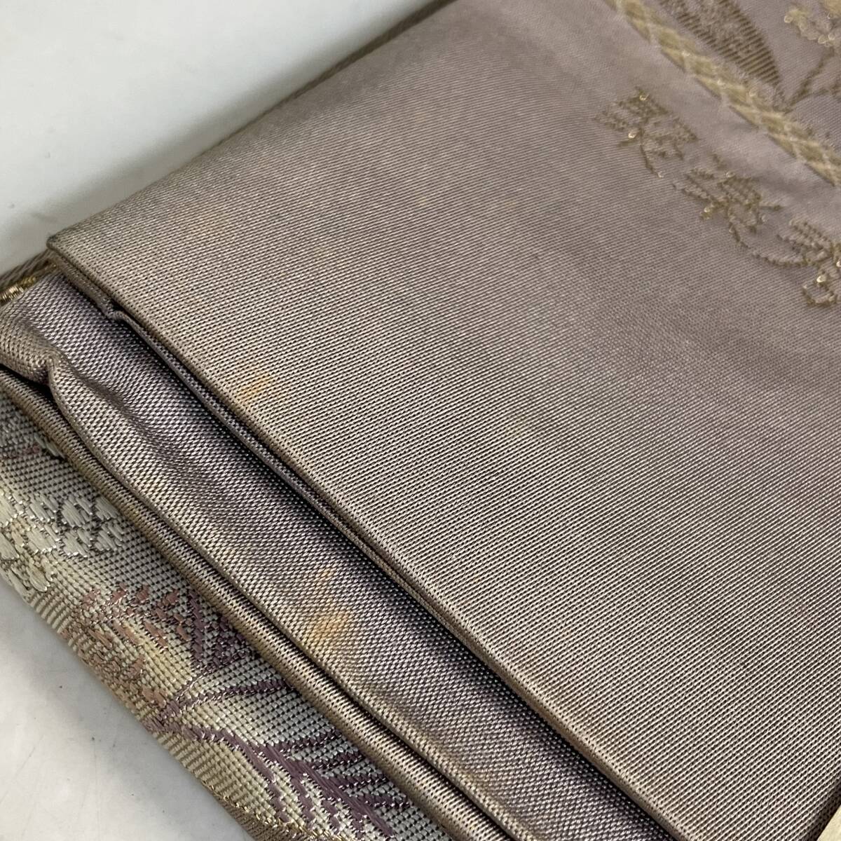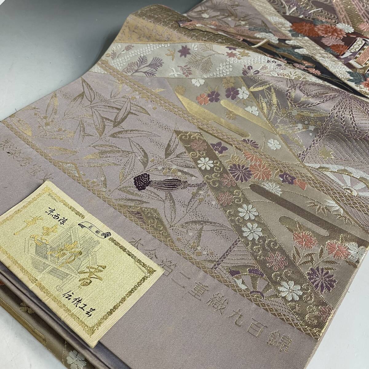 UNY41/58【志都香帯】六通柄袋帯 唐織 聚楽秀宝文 本金箔二重織九百錦 箔 金糸 金色 六通 正絹 落款 逸品 未使用品 ※長期保管◎ 收藏