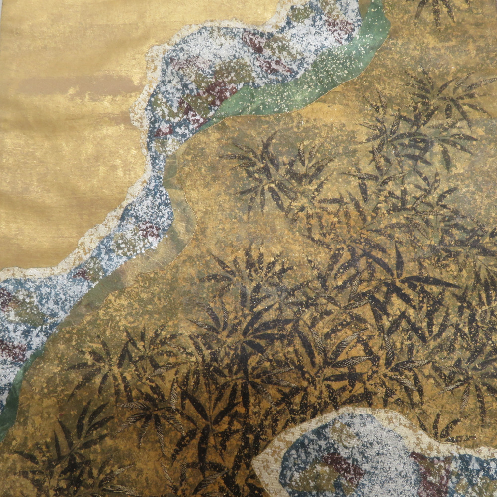 袋帯 正絹 全金箔 道長取文様 金色x緑色 お太鼓柄 フォーマル 礼装 長さ425cm 收藏