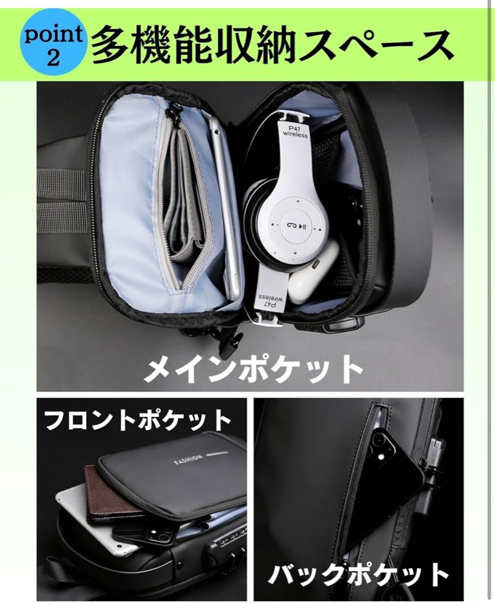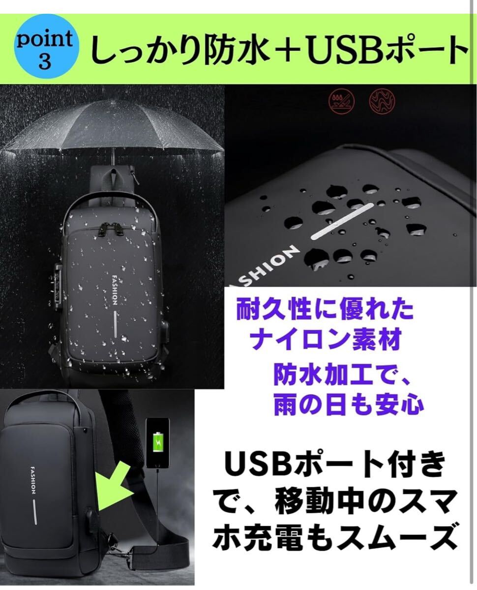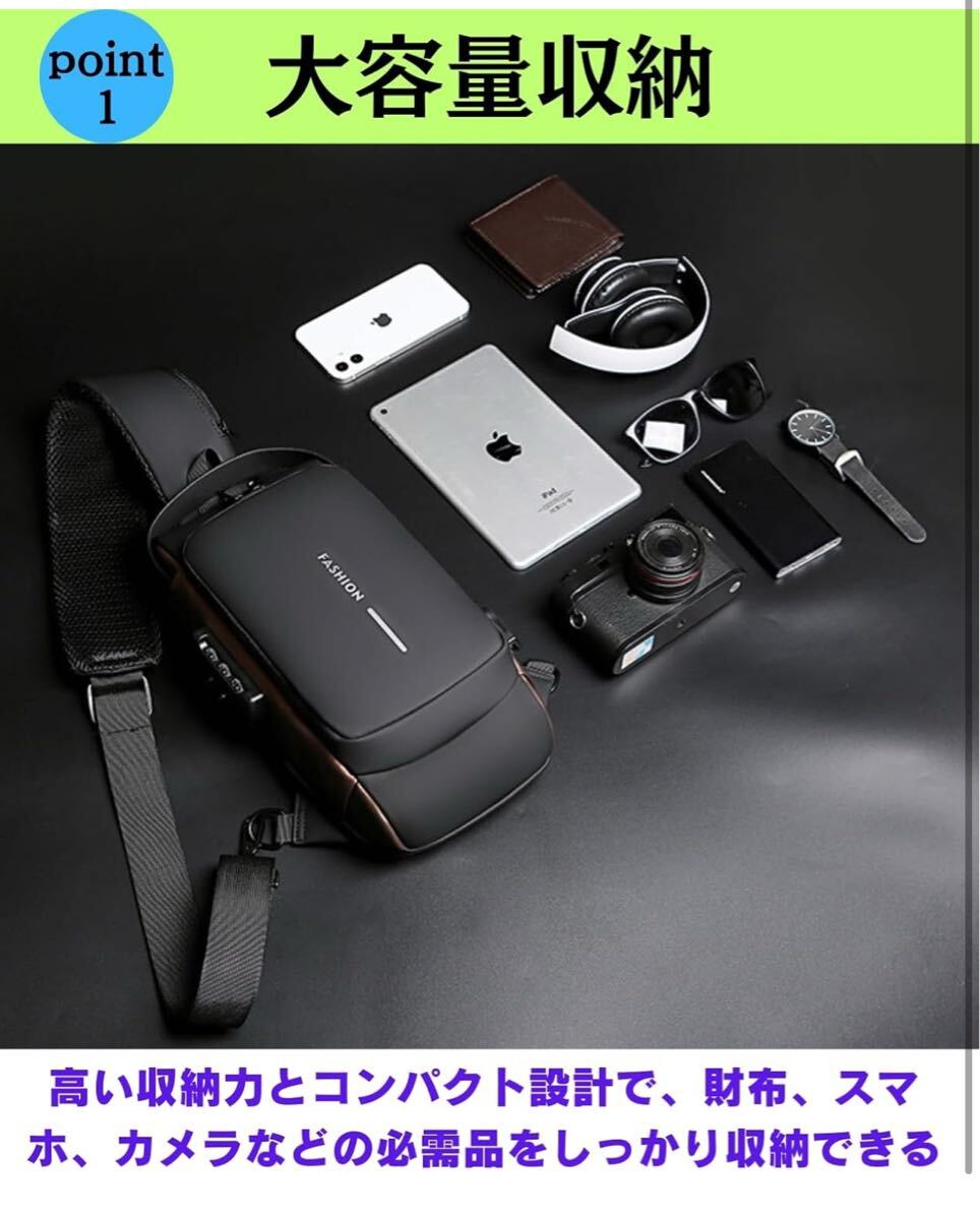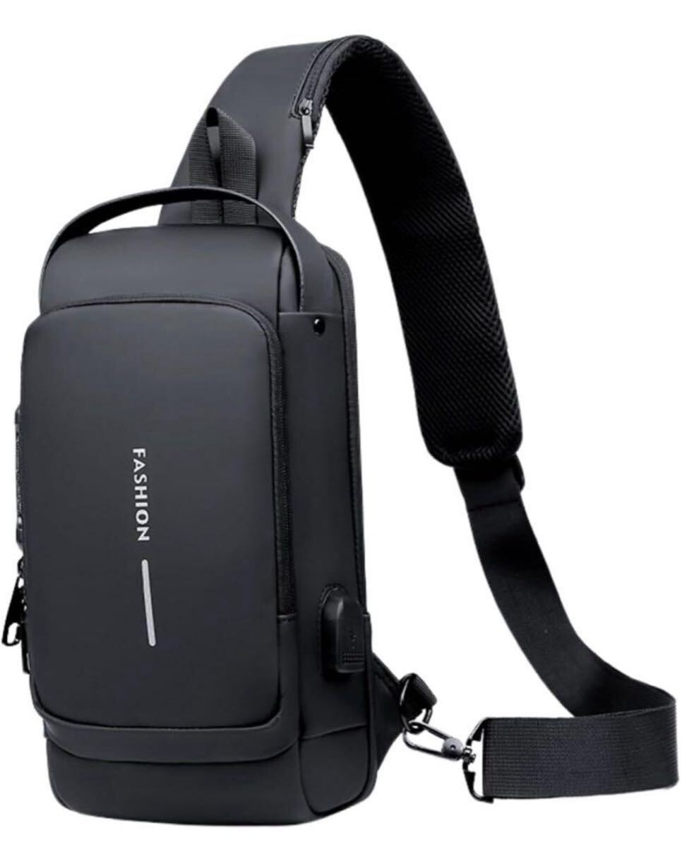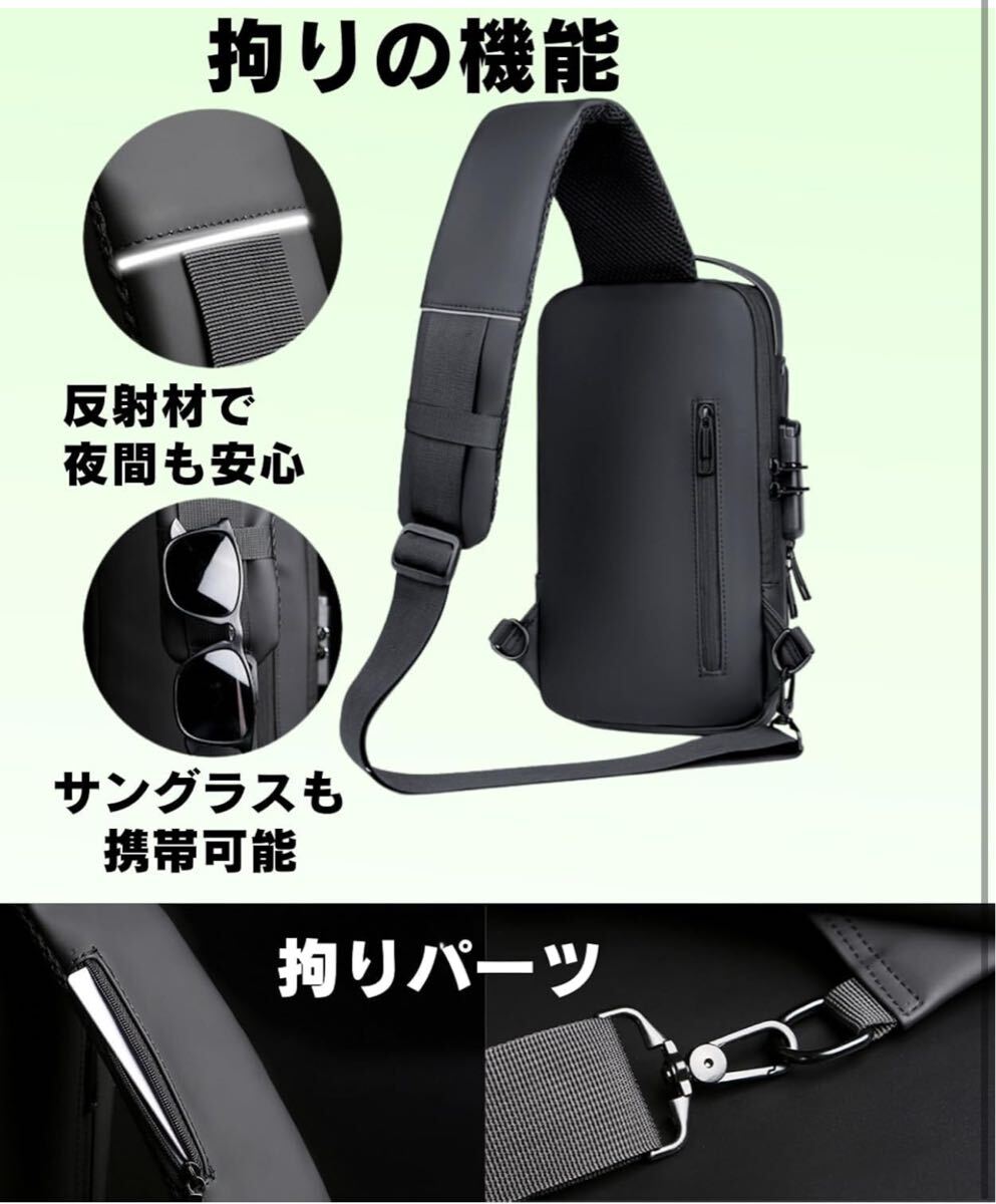 ショルダーバッグ ボディバッグ スポーツバッグ 斜めがけバッグ 肩掛けバッグ メンズ 人気 盗難防止 USBポート 軽量 大容量 撥水(ブラック) 收藏
