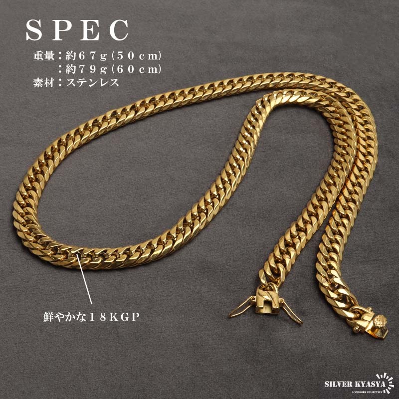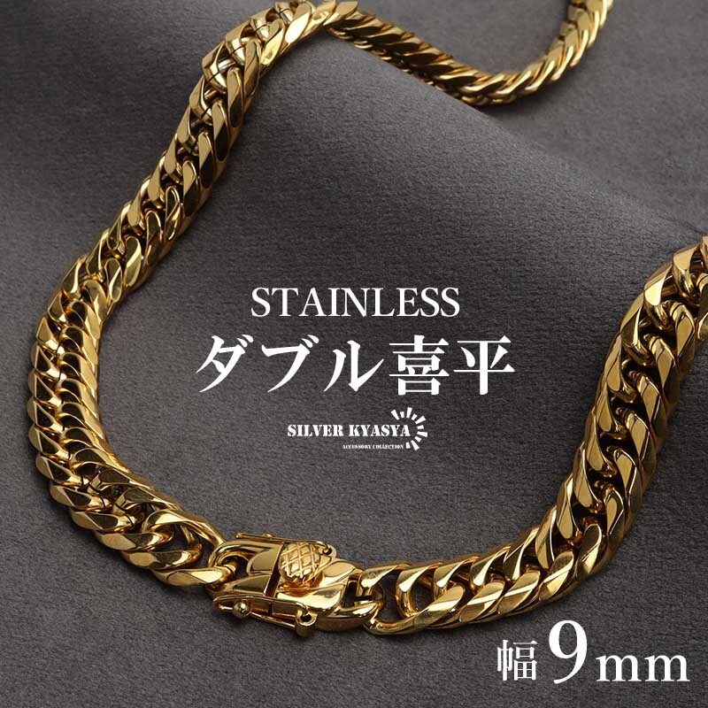 (60cm) ステンレス製 ダブル喜平ネックレス ゴールド 18KGP 幅9mm マイアミチェーン 金アレ対応 收藏