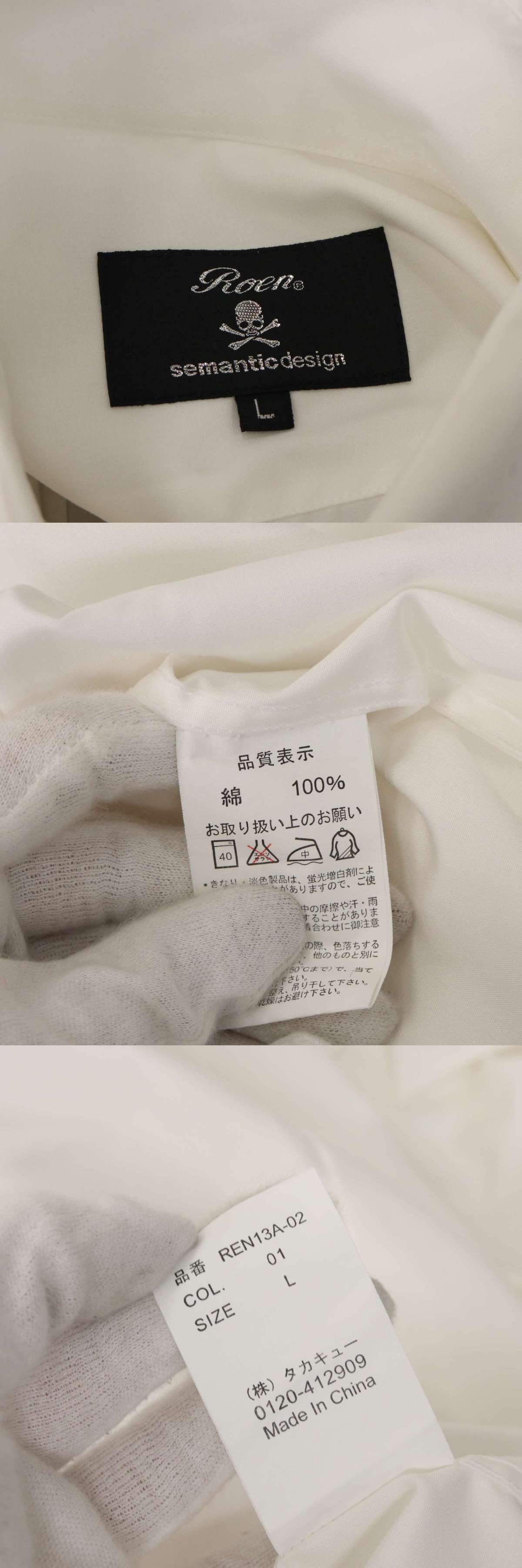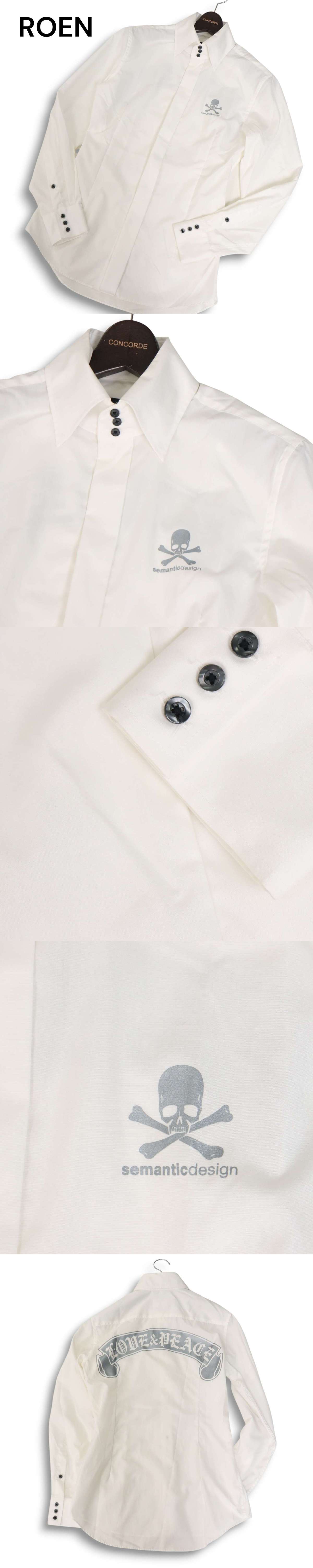 Roen × semantic design ロエン × セマンティック デザイン 通年 スカル&バック プリント★ 長袖 シャツ Sz.L メンズ 白 收藏