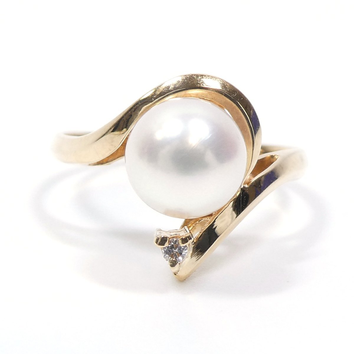 【K18】パール 6.8mm ダイヤモンド リング 指輪 12号 2.2g イエローゴールド 18金 真珠 ダイヤ 冠婚葬祭 フォーマル/ネコポスOK◇J 收藏