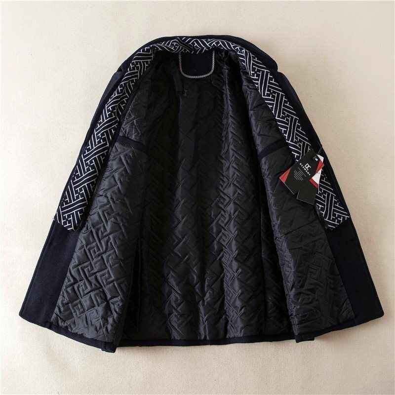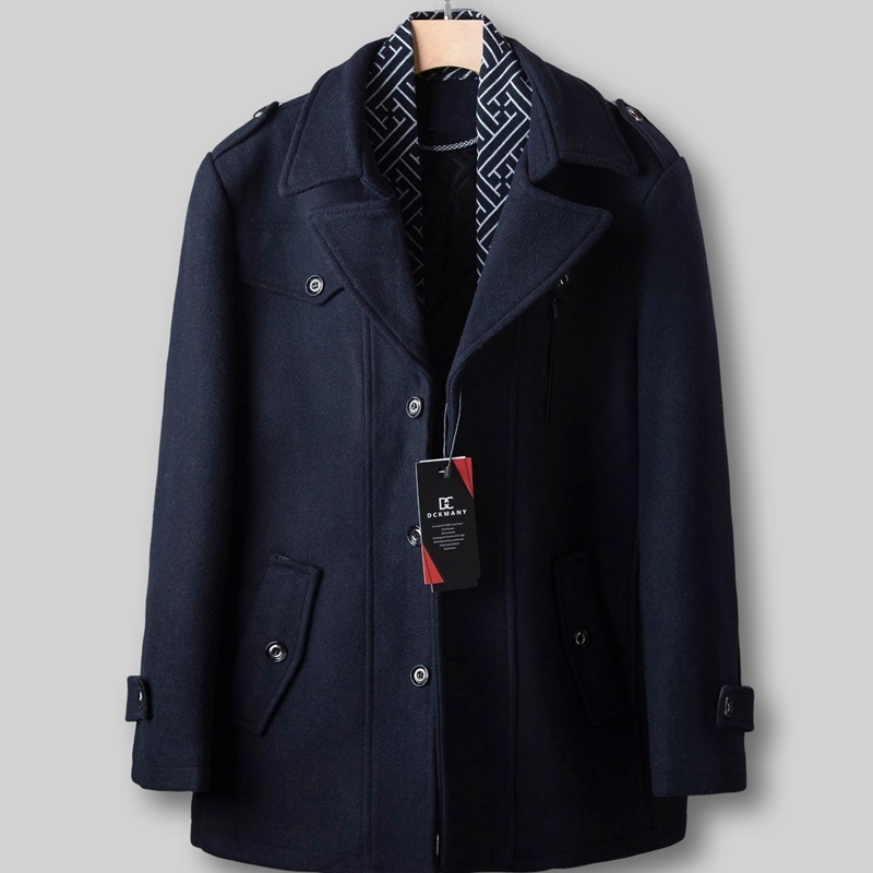P646-表記L 新品DCKMANY ブリティッシュスタイル ウール混 ミドルコート メンズ ストール付き 中綿ジャケット 中綿コート 防寒 厚手 ビジネス カジュアル アウター 冬服 秋服 暖かい 日常 通勤