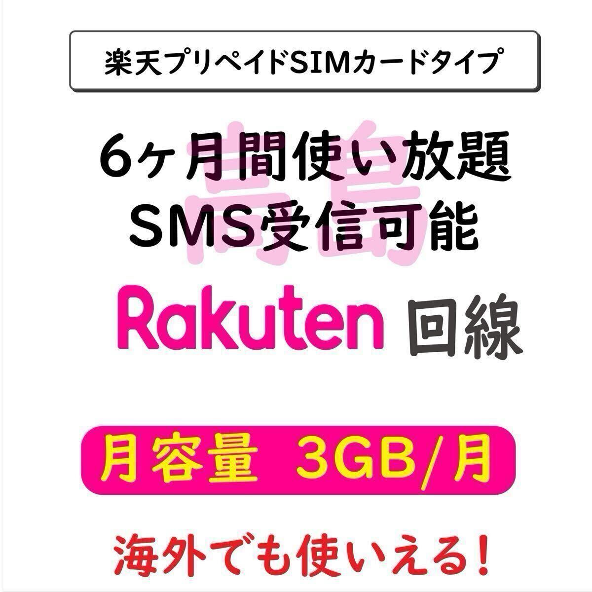 プリペイドSIMカード 楽天回線 データ通信 3GB/月 6ヶ月間利用 SMS受信可 收藏