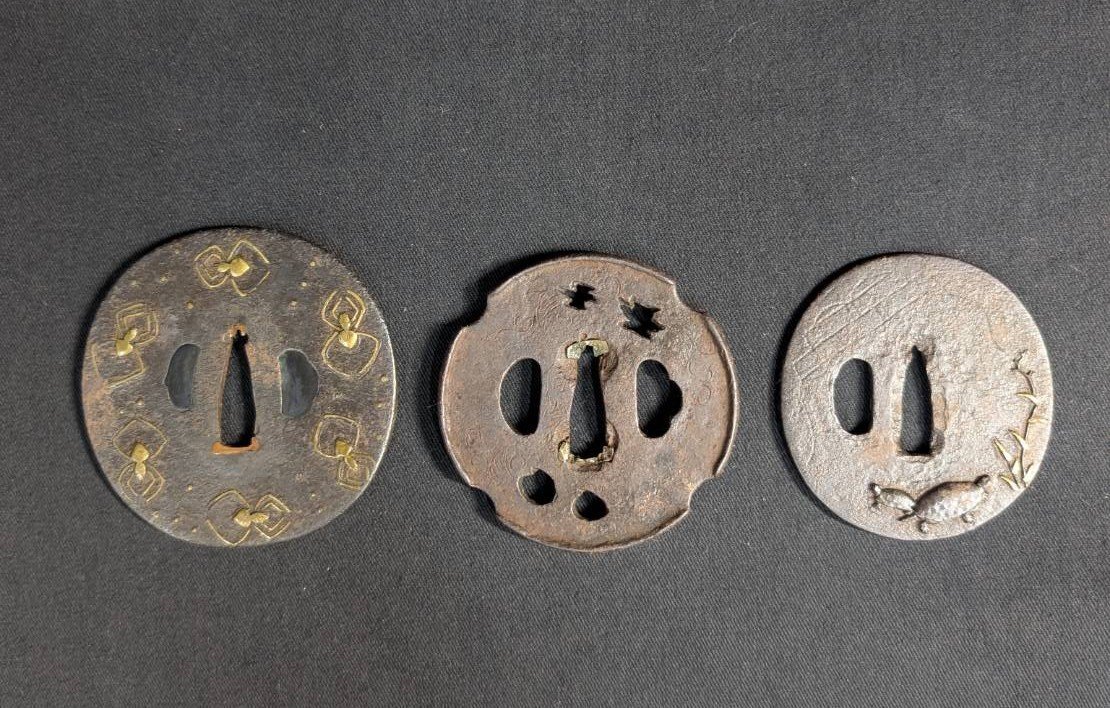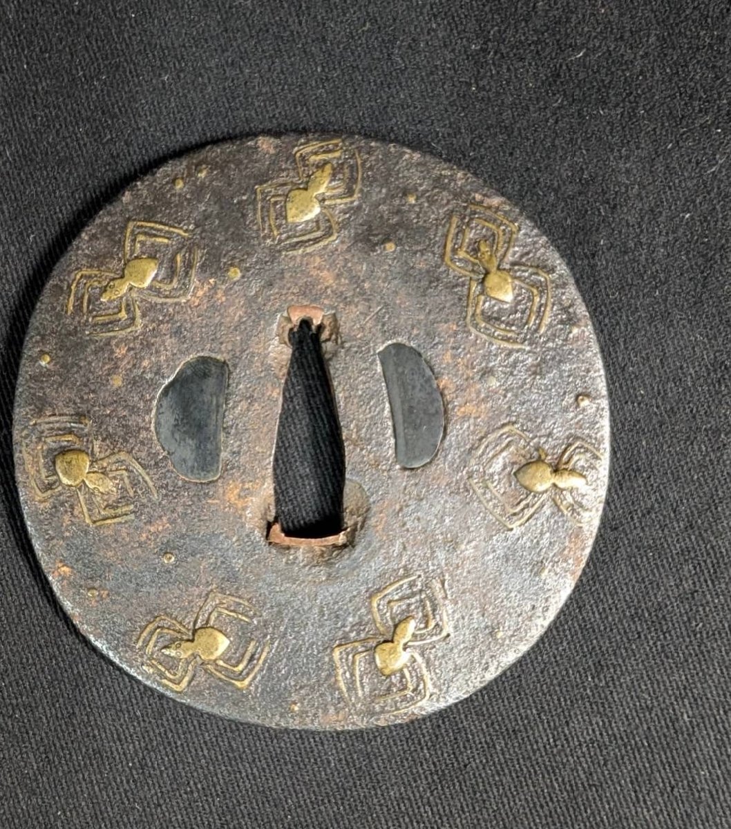 MIK1905【24】 刀装具◆鍔◆つば◆透かし彫り◆象嵌◆金象嵌◆蜘蛛◆亀◆植物◆木瓜形◆猪目◆柄 【1円スタート】 收藏
