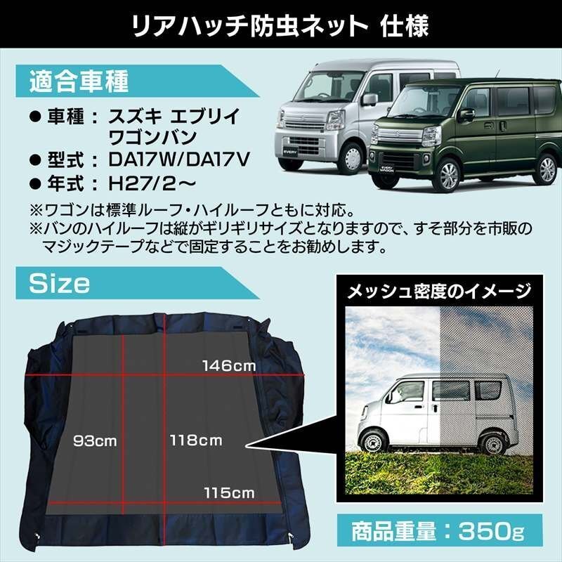 リアゲート用防虫ネット エブリイ ワゴン バン DA17W DA17V リアハッチ リヤ 虫よけ 網戸 遮光 アウトドア 車中泊 即納 10月限定1000円引 收藏
