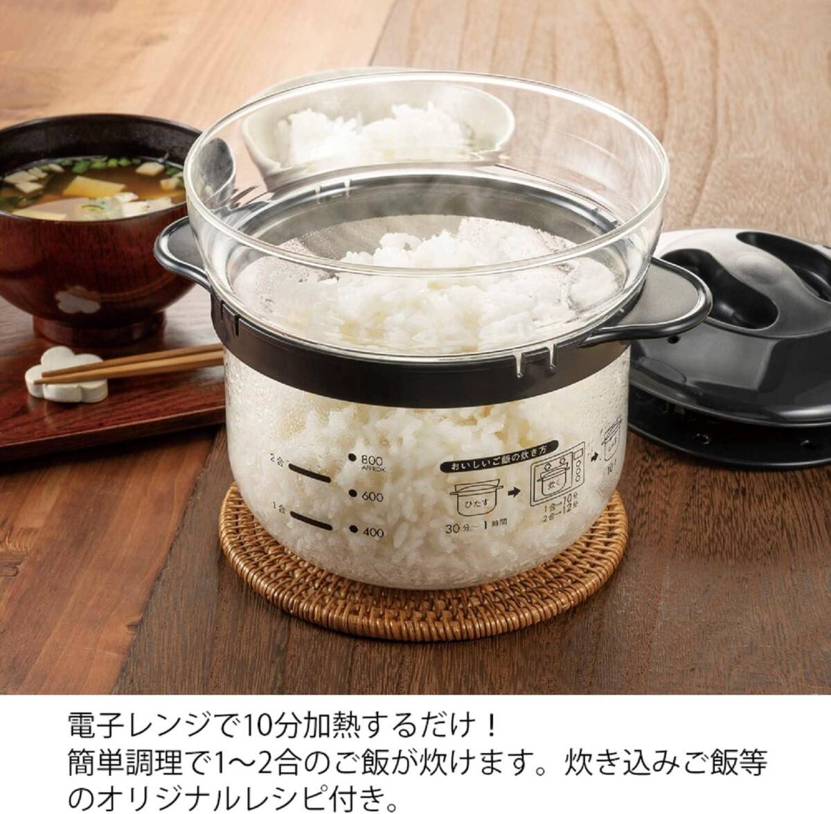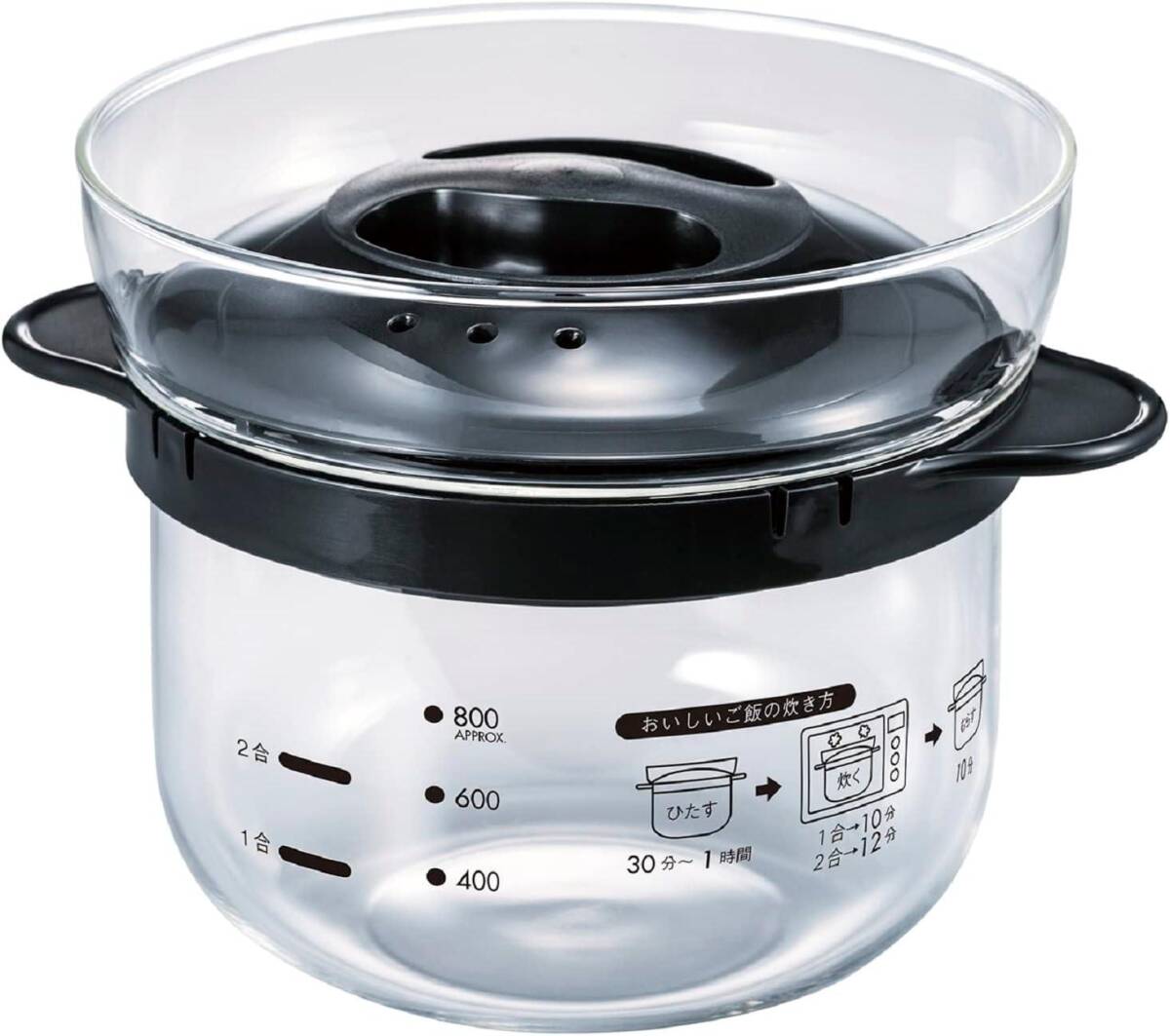 HARIO(ハリオ) ガラスのレンジご飯釜1~2合 電子レンジ用 ブラック 1~2合用 日本製 プレゼント ギフト 贈り物 XRC 收藏