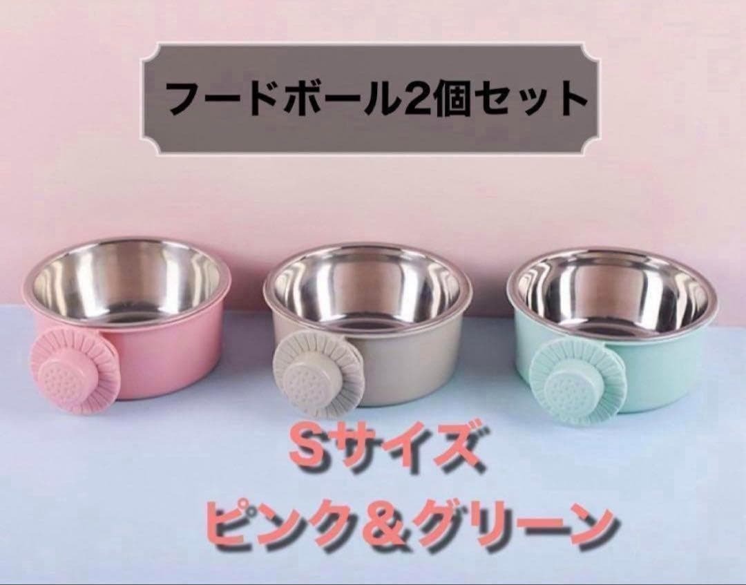 S フードボウル ペット用 緑&ピンク 2個セット 犬用 猫用 餌入れ 水入れ 收藏