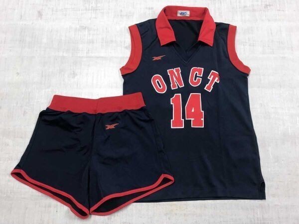 アシックス asics オールド レトロ バレー バスケ ユニフォーム 上下セットアップ ゲームシャツ ショートパンツ レディース 日本製 13-4 紺 收藏