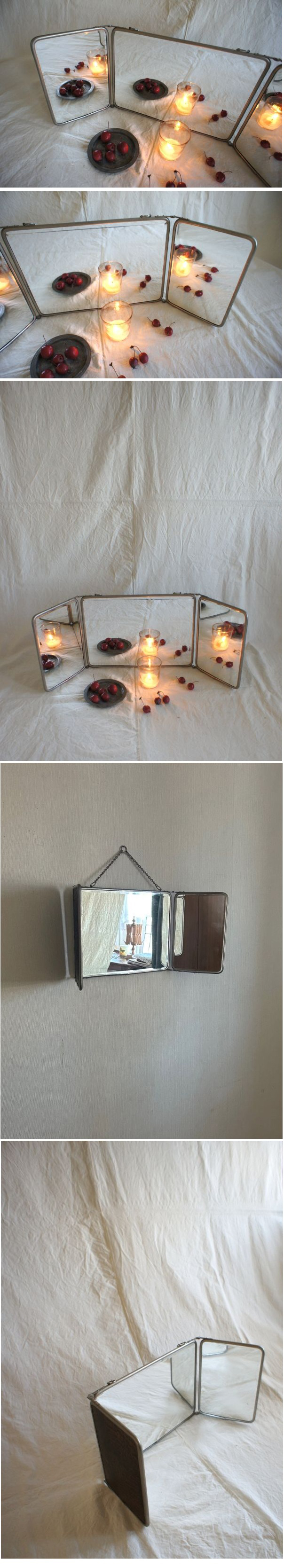 古い三面鏡バーバーミラーで