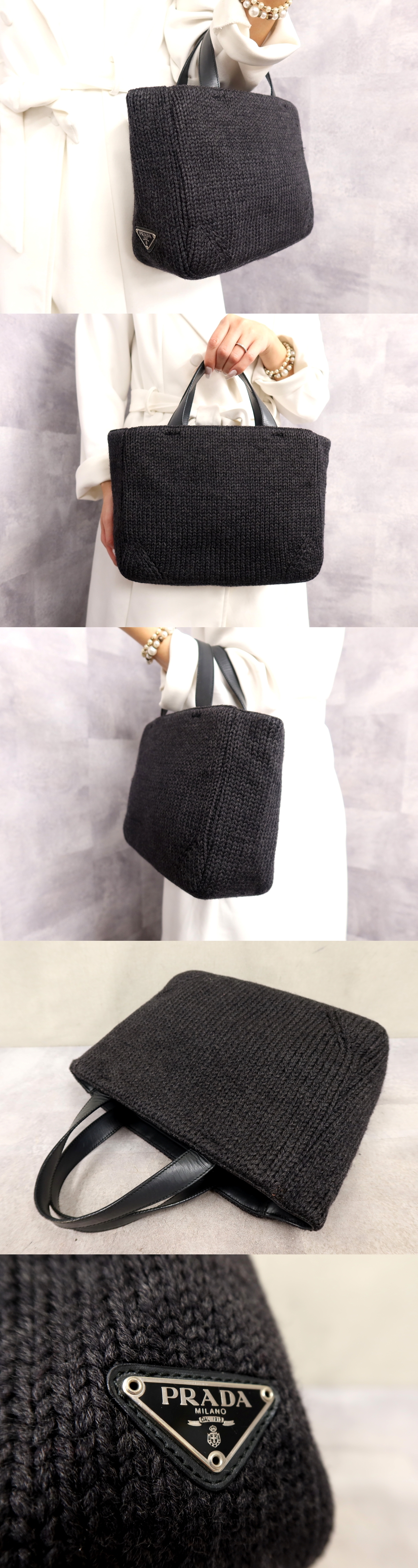 ●超美品●PRADA プラダ●三角ロゴプレート●ウール カーフ レザー 本革●トート ハンド バッグ●ダークグレー●イタリア製●収納●Js62754 收藏
