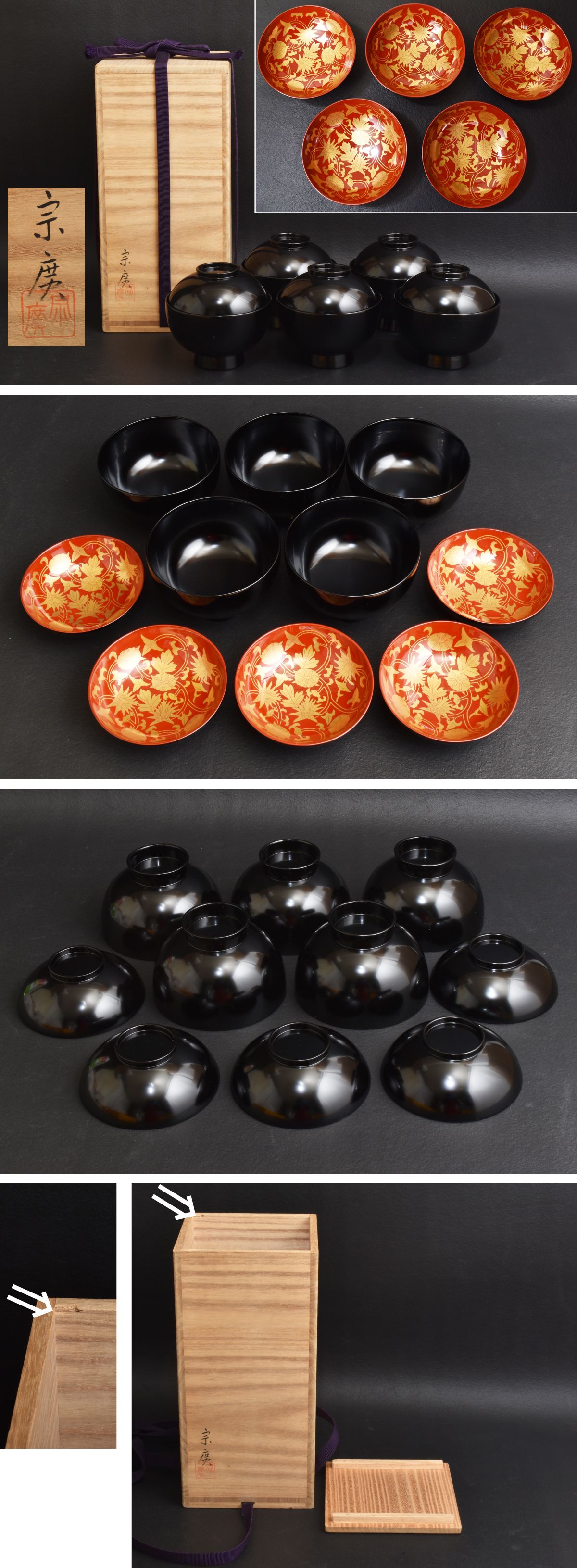 6196 道場宗廣 吸物椀 本金蒔絵 5客 美品 共箱 收藏