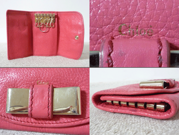 クロエ Chloe レザー ピンク リボンロゴ金具 6連 キーケース 收藏
