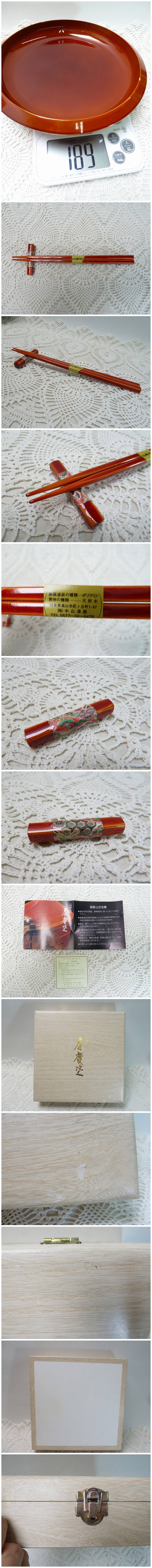 @飛騨高山 春慶塗 深皿1枚・お箸1膳・箸置き1個 化粧ケース入り 合成漆器 カシュー塗装 天然目 伝統工芸品 コレクション 和食器 收藏