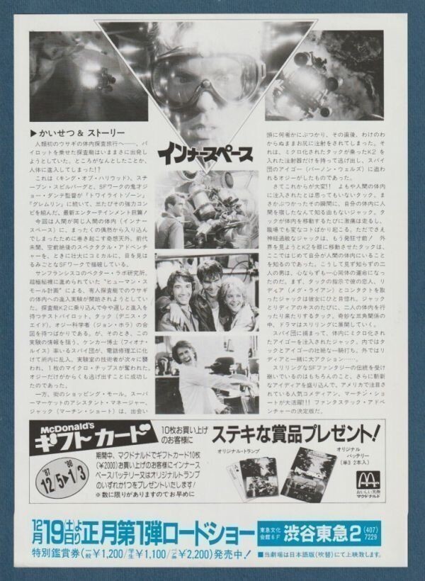 チラシ■1987年【インナースペース】[ A ランク ] Ver.a1/マック 広告 渋谷東急2 館名入り/ジョー・ダンテ スティーヴン・スピルバーグ 收藏