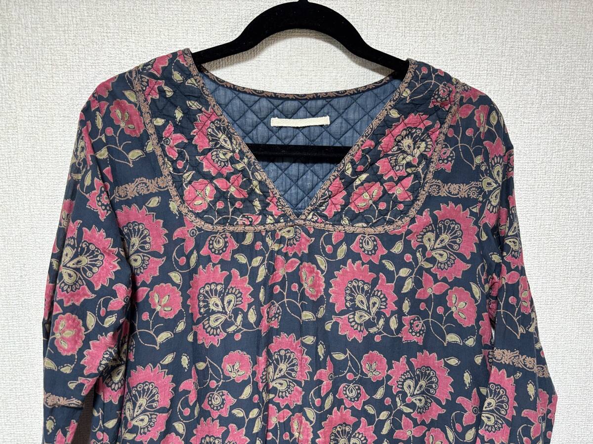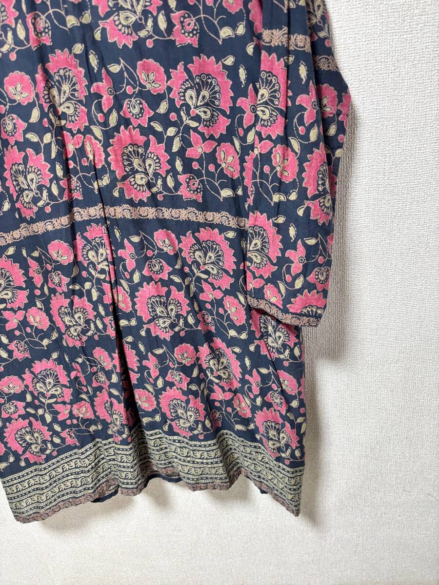 d3526◆インド製綿 ローンチュニック /サイズ:F ◆ 綿100% /丈96 袖丈60 肩幅40 脇下身幅51cm 收藏