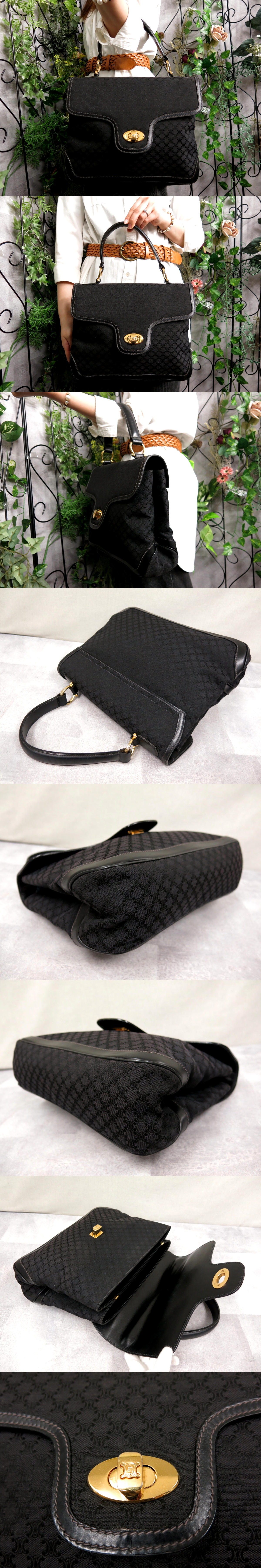 ●超美品●CELINE セリーヌ●マカダム●ターンロック●キャンバス カーフ レザー 本革●ハンド バッグ●黒●ゴールド金具●B5●Js55956 收藏