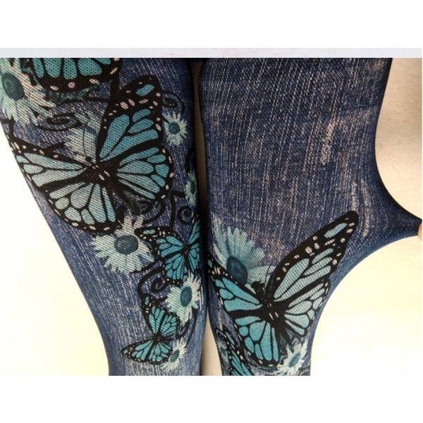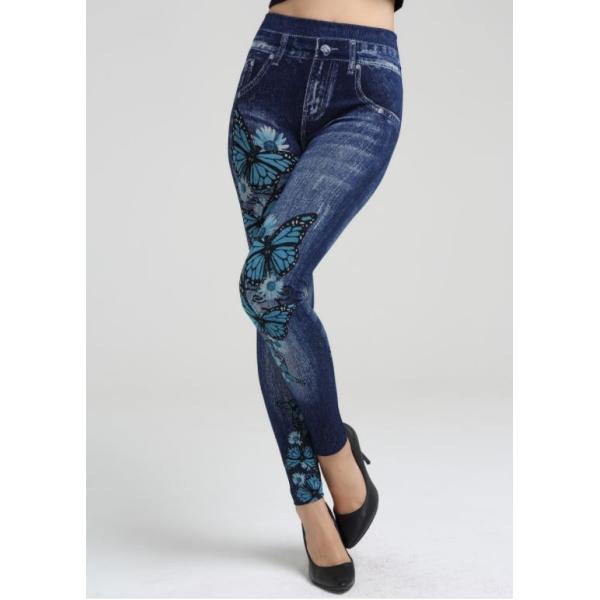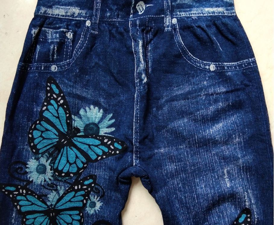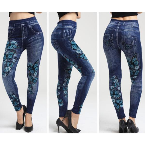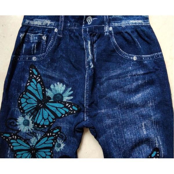 蝶と花柄 デニム風 レギンス 伸縮 ストレッチ素材 收藏