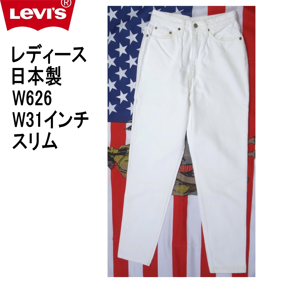 リーバイス 日本製 ホワイト 白 ジーンズ レディース スリム Levis W626 日本製 W31インチ MADE IN JAPAN 收藏