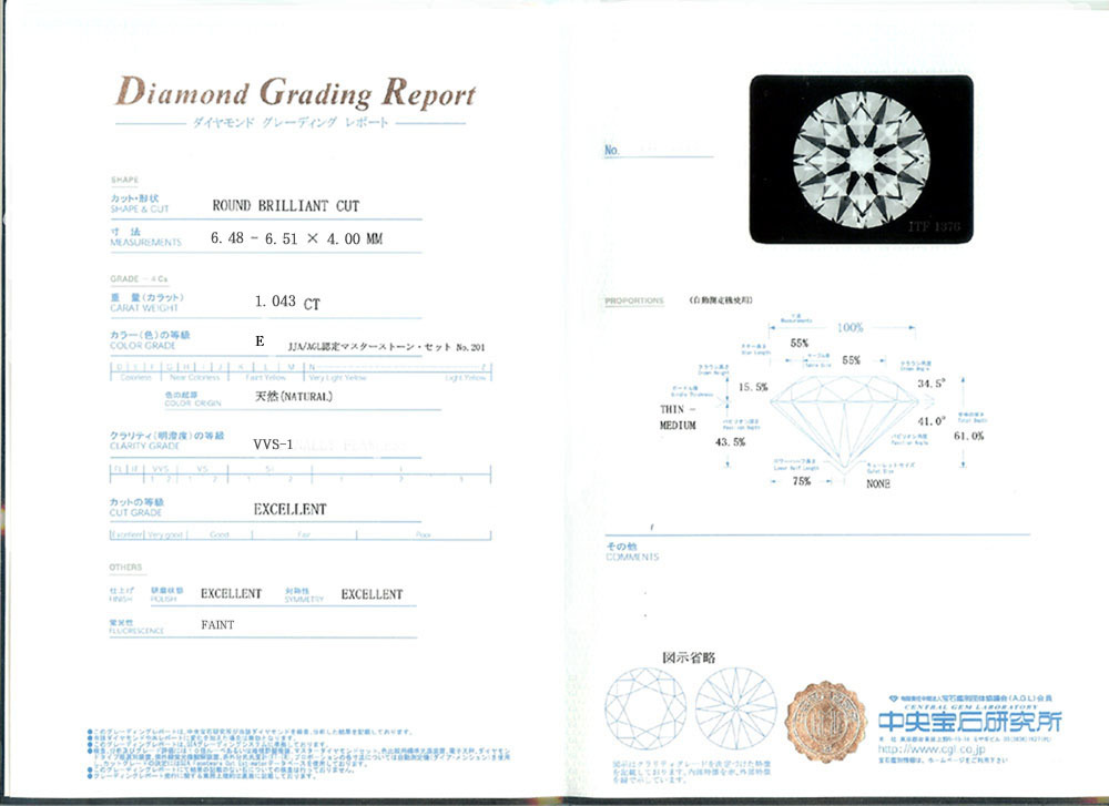 | カラット | 1.043ct | ||||||||||||||||
