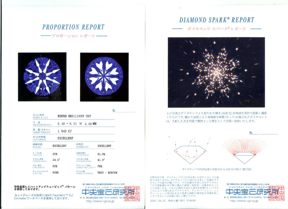 中央宝石研究所 H&C・DS鑑定書付 |