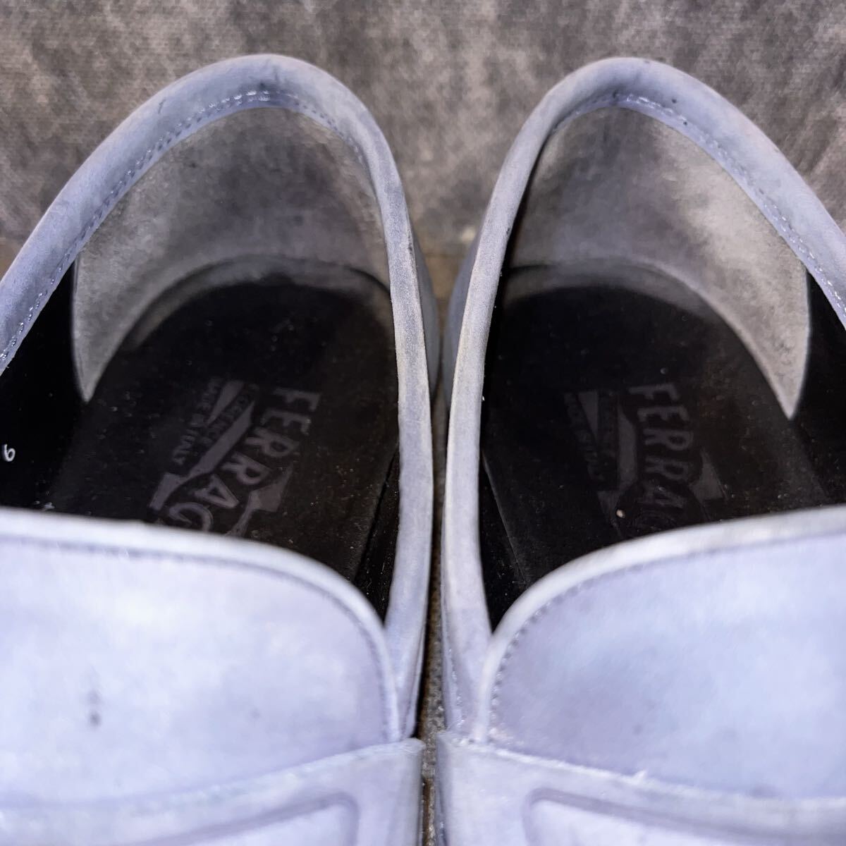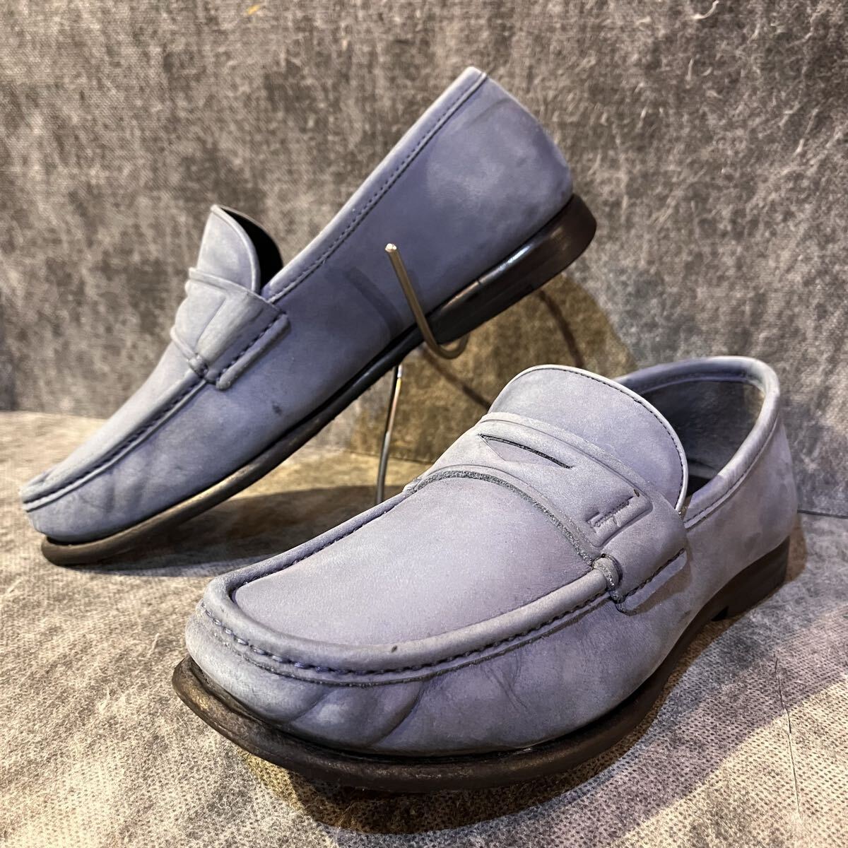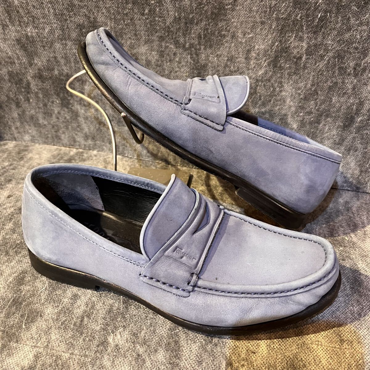 【イタリア製 定価10万程】Salvatore Ferragamo サルバトーレ フェラガモ コインローファー US 6 EEE 24.0cm程 ヌバック スカイブルー 收藏