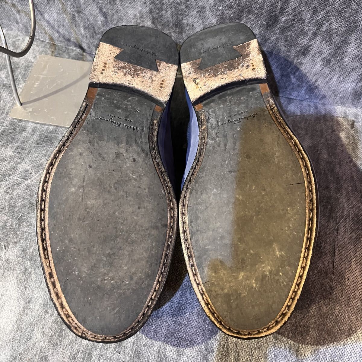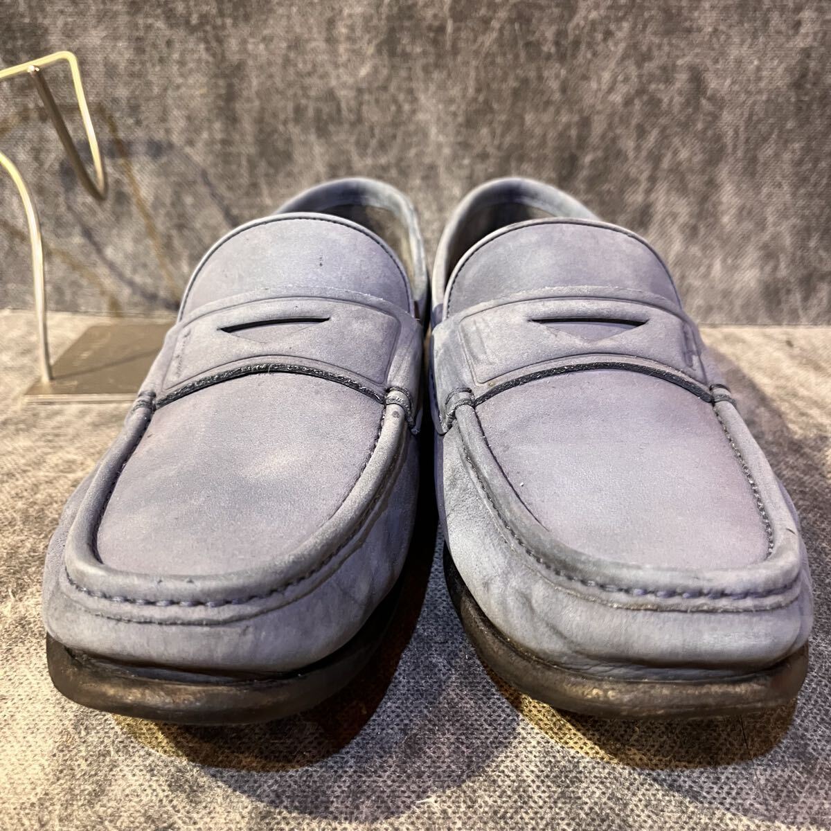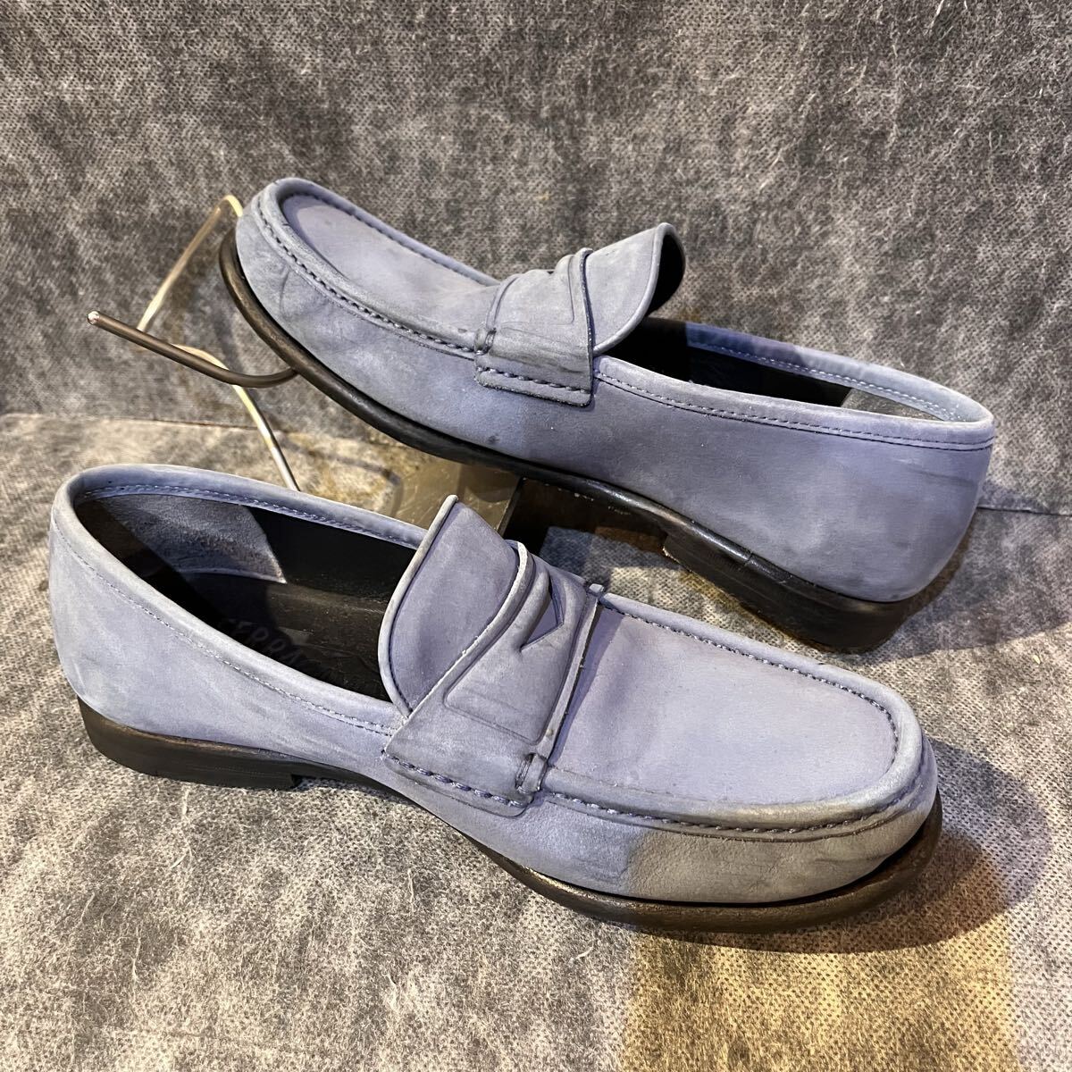【イタリア製 定価10万程】Salvatore Ferragamo サルバトーレ フェラガモ コインローファー US 6 EEE 24.0cm程 ヌバック スカイブルー 收藏