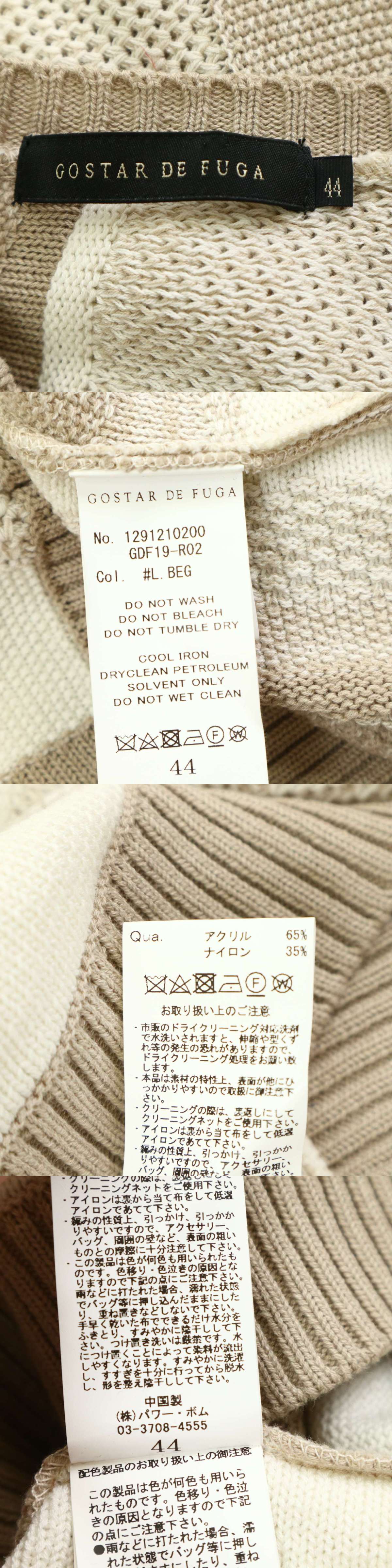 GOSTAR DE FUGA ゴスタール ジ フーガ 秋冬 切替デザイン★ セーター ニット Sz.44 メンズ 收藏