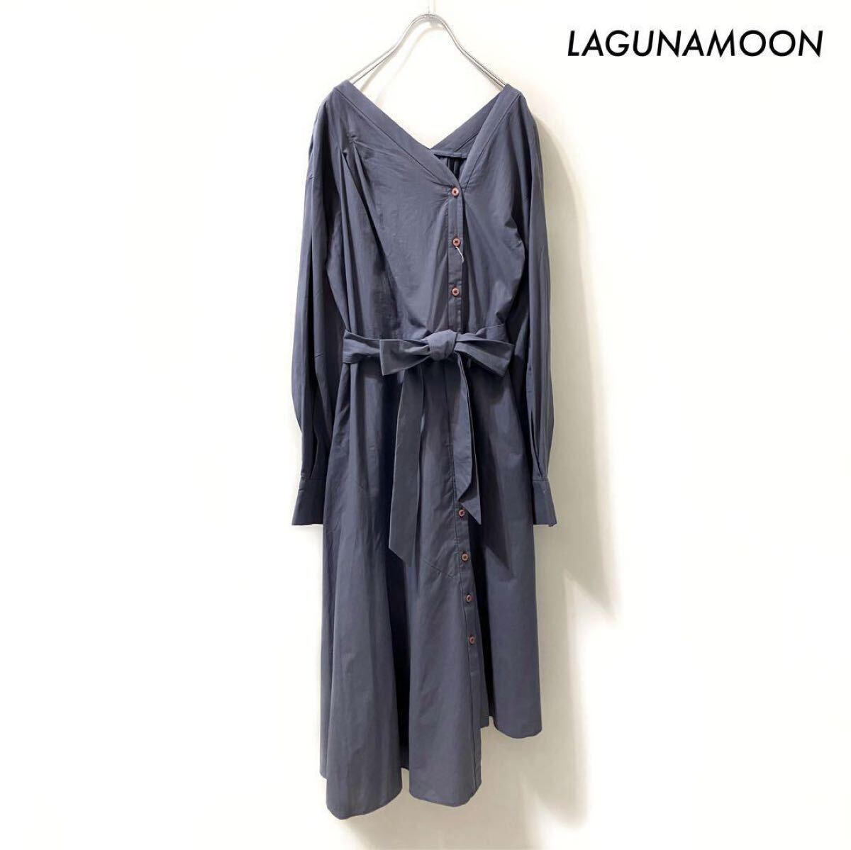 【送料無料】LAGUNAMOON ラグナムーン★アシンメトリーシャツワンピース ブルー 未使用品 收藏