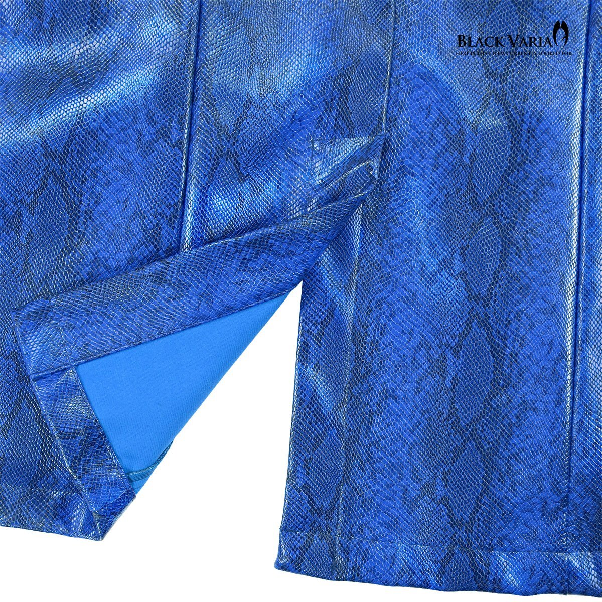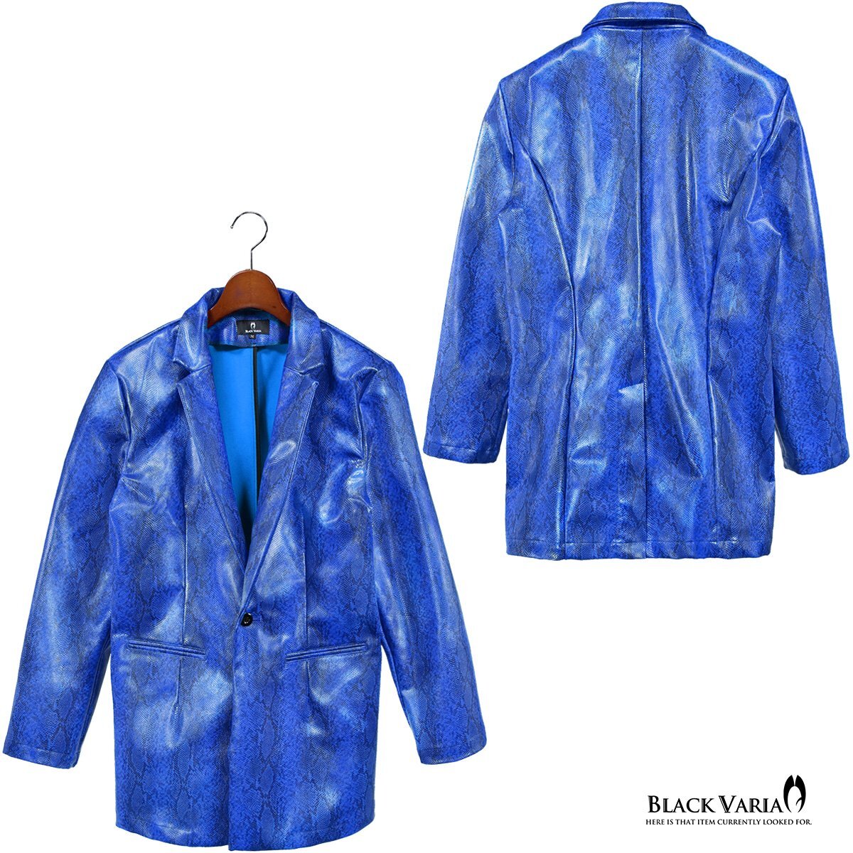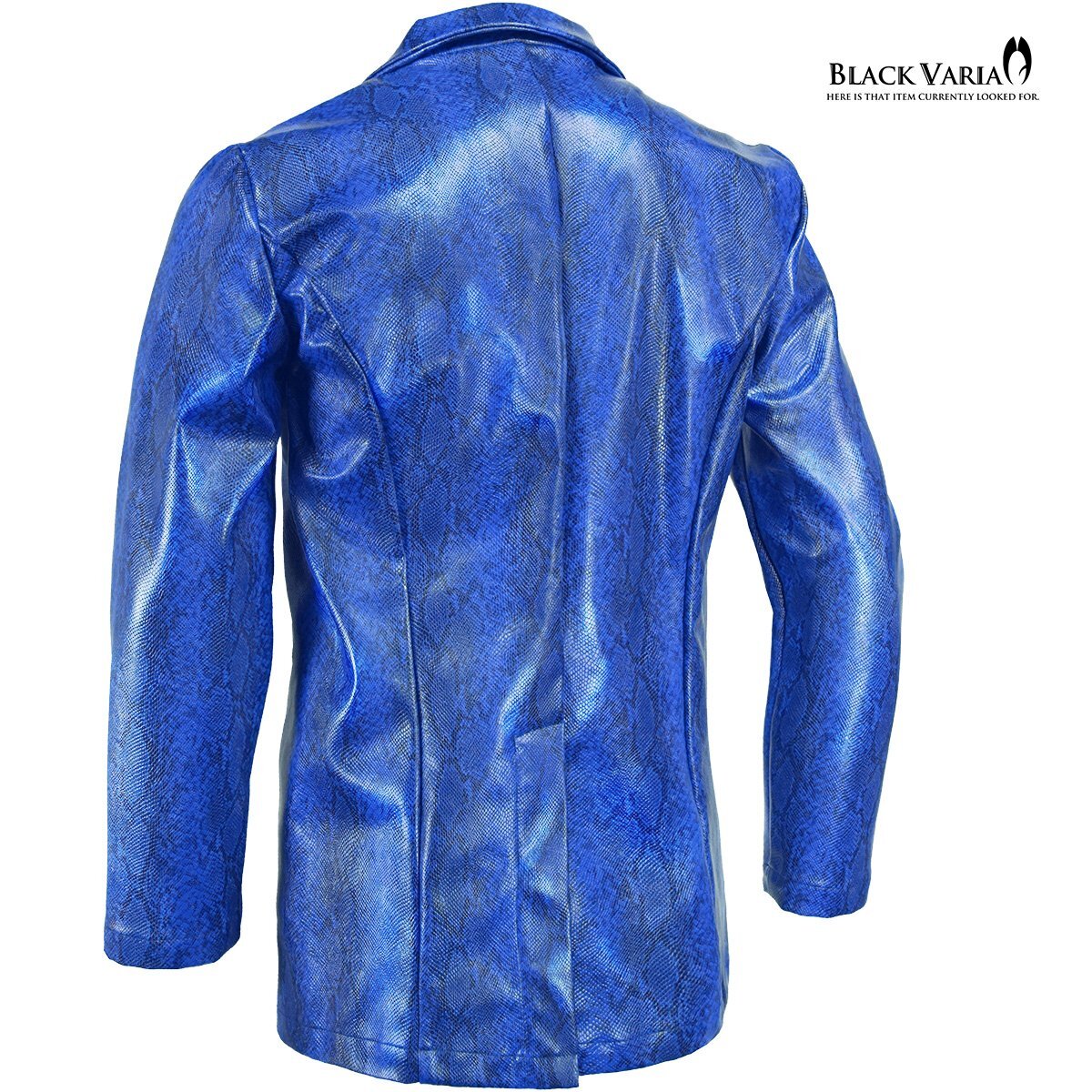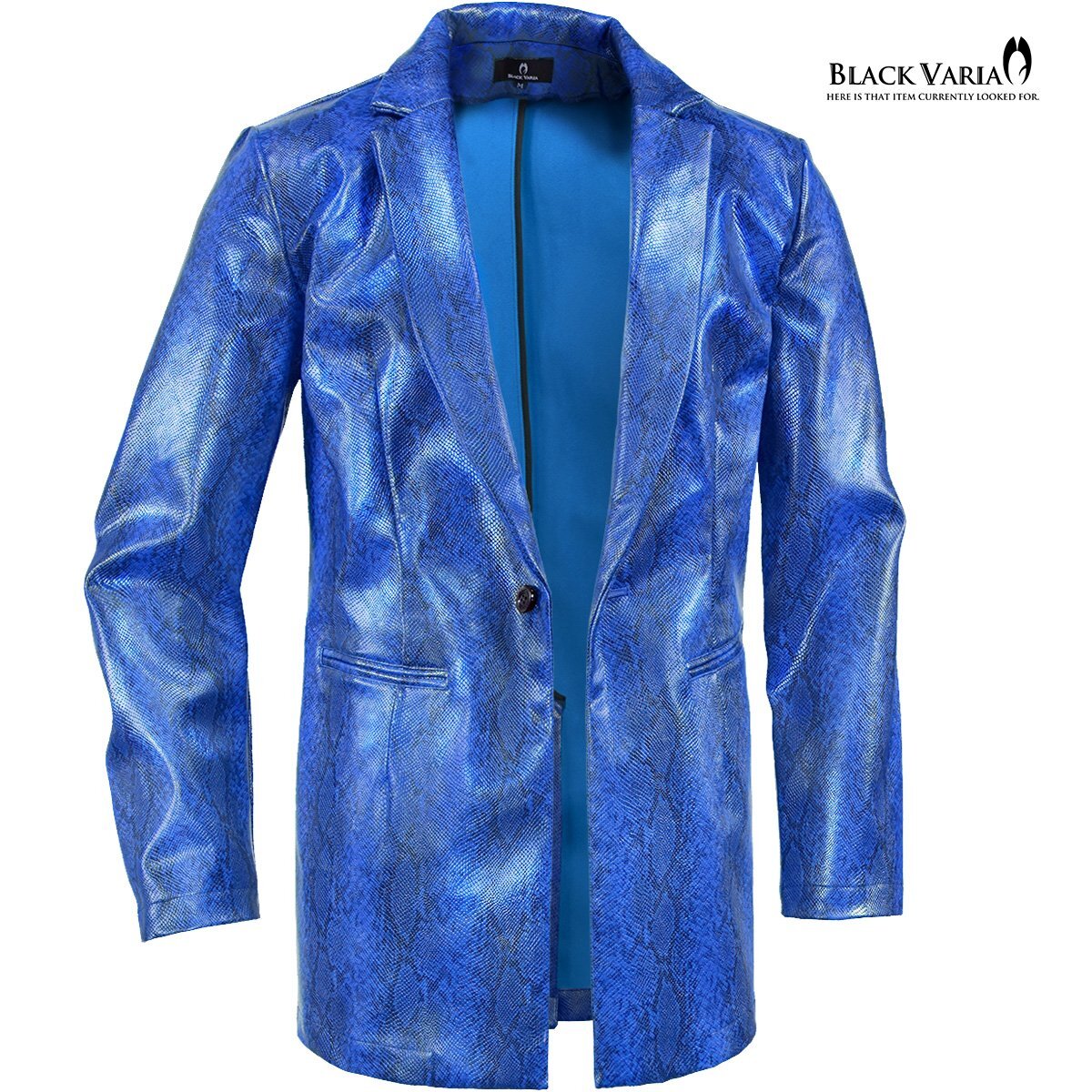 232700-blbk BLACK VARIA PUレザー 蛇パイソン柄 合成皮革 1釦 ロングテーラードジャケット メンズ(ブルー青ブラック黒) M ステージ衣装 收藏