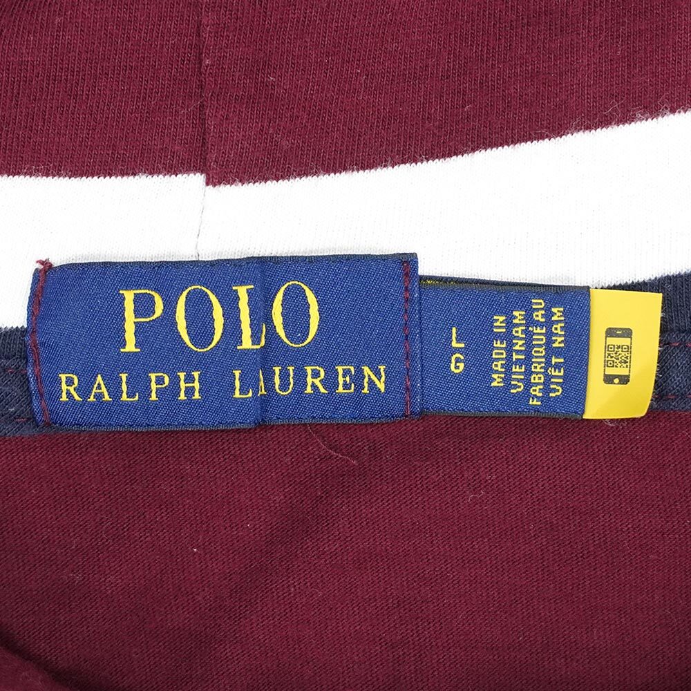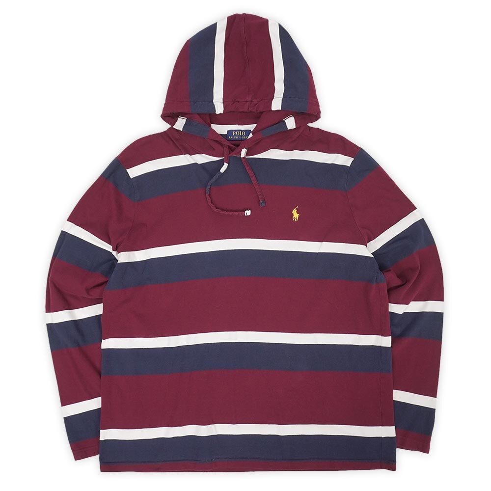 ポロラルフローレン POLO RALPH LAUREN 00s マルチボーダー フーディーカットソー パーカー ロンT (-6347) バーガンディー系 L 收藏